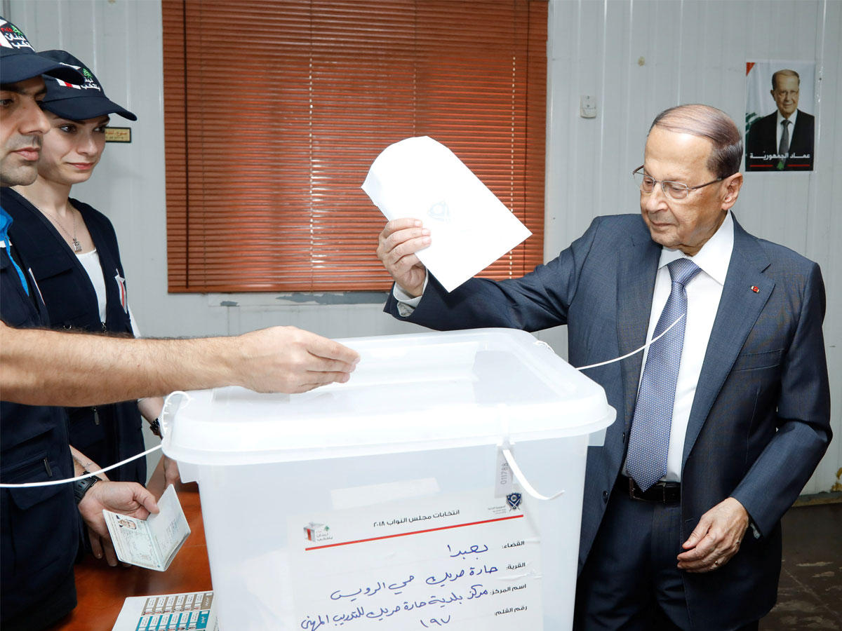 بعد الإدلاء بصوته في حارة حريك، جنوب العاصمة بيروت، قال رئيس الجمهورية العماد ميشال عون أمس: «صوتي للعهد». وأكّد أن «اللبنانيين يمارسون اليوم أهمّ عملية وطنية سياسية لاختيار من يمثلهم لأربع سنوات»، مشيراً إلى أنّه «لا يجوز لأحد عدم ممارسة واجبه المقدس بالانتخاب». وقال: «من لا يمارس حقّه، يتنازل عن حق المحاسبة للنواب»، وتمنى أن «يكون الانتخاب على حسب إرادتكم»، لافتاً إلى أنّ «المجلس النيابي هو أم السلطات، وهذا أمر مهم للجميع».