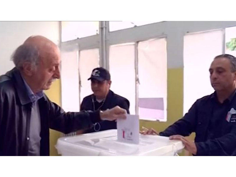 أما رئيس "اللقاء الديمقراطي" النائب وليد جنبلاط فغرّد عبر "تويتر" قائلا: "في ربع الساعة الاخير المطلوب رفع نسبة التصويت الى الأقصى والانقضاض والتجمع في مراكز الاقتراع كرفوف الحجال الشامخة الأبية الجميلة من جبالنا، للحفاظ على هويتنا ووجودنا وكرامتنا في مواجهة الطارئين كالغربان السود الذين يحومون على الجيف والنفايات من جماعات السلطة الفعلية والملحقة".باسيل