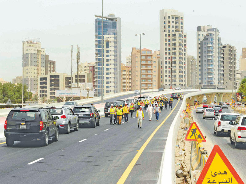 وأوضح أنه «نظرا لطبيعة المنطقة والمعدل العالي للتدفق المروري عليها، فقد قسمت أعمال تنفيذ المشروع إلى مرحلتين يتم العمل فيهما بطريقة متزامنة، بهدف تجنب الازدحام المروري في أوقات الذروة، وتسهيل حركة الدخول والخروج من وإلى كل المناطق، مع المحافظة على كفاءة الخدمات القائمة على جانبي الطريق».وبيّن الحصان أن باقي الأعمال الخاصة في المشروع تتعلق بالخدمات التي تشمل العديد من الشبكات التي تخدم المنطقة، وسيتم استكمالها وفقاً للجدول الزمني، حتى نهاية العام الحالي، لافتا إلى أن باقي الأعمال تعد خدماتية لا تؤثر على حركة المرور في المنطقة. وأكد أن هناك العديد من المشاريع التي تتطلع الهيئة إلى تنفيذها، يأتي في مقدمتها «تطوير طريق الفحيحيل، والدائري الرابع، والدائري الثالث، والثاني، واستكمال المرحلة الأخيرة من الدائري الأول، إضافة إلى الطرق الإقليمية المحيطة بالكويت وضواحيها».