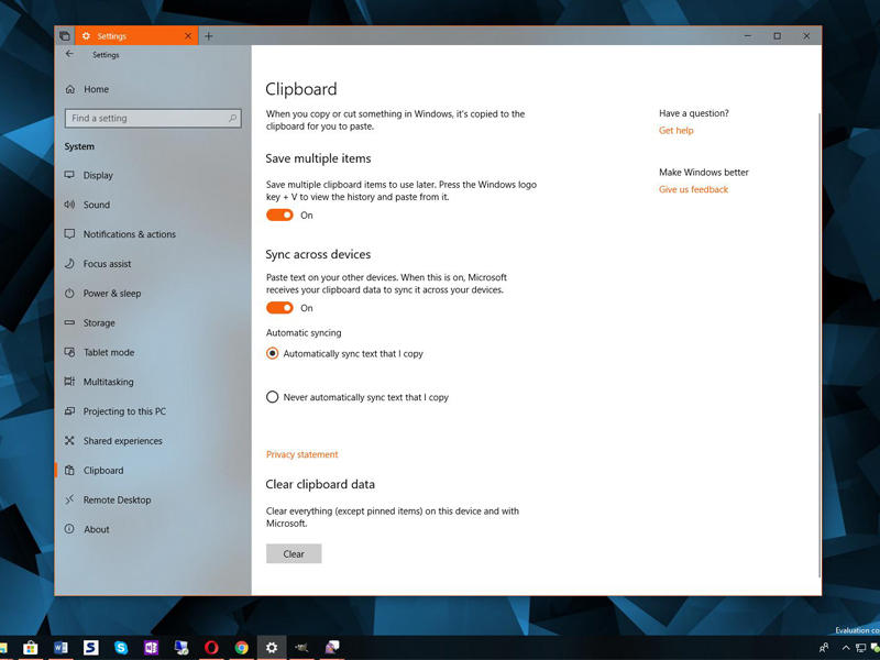 وميزة أخرى تشمل النسخ واللصق، فعند الضغط على WIN+V بعد النسخ يمكن اختيار ما المراد لصقه، حيث إن Clipboard أصبحت تدعم تعدد النصوص، كما يمكن تثبيت أي نص من الخصائص. أما المطورون ومستخدمو أنظمة التشغيل الأخرى، فأصبحت Notepad قادرة على تشغيل المستندات النصية التي تم إنشاؤها في لينكس أو ماك بتنسيق مفهوم، كما حصلت على خيار جديد يمكن من خلاله البحث مباشرة عن أي كلمة محددة في محرك البحث Bing، ويمكن الوصول للخاصية عبر الضغط على الزر الأيمن.
