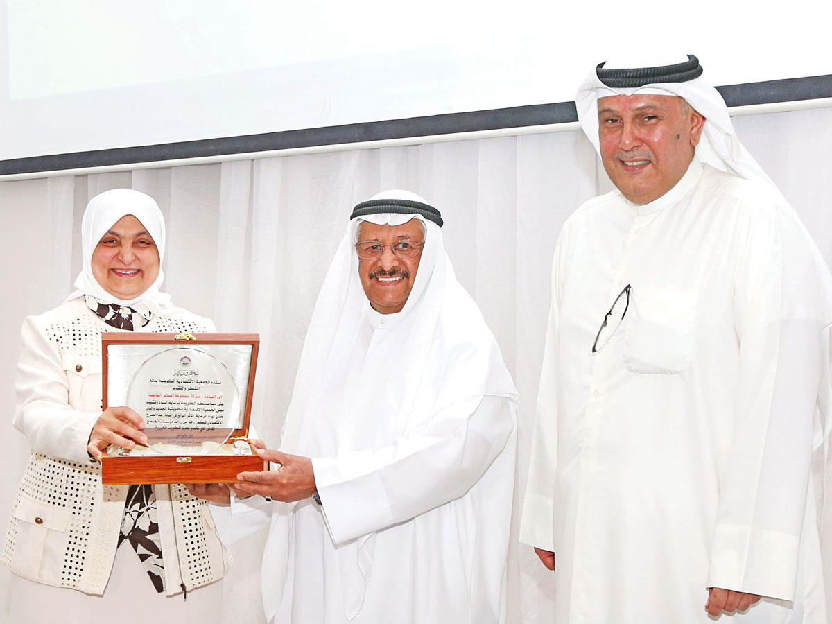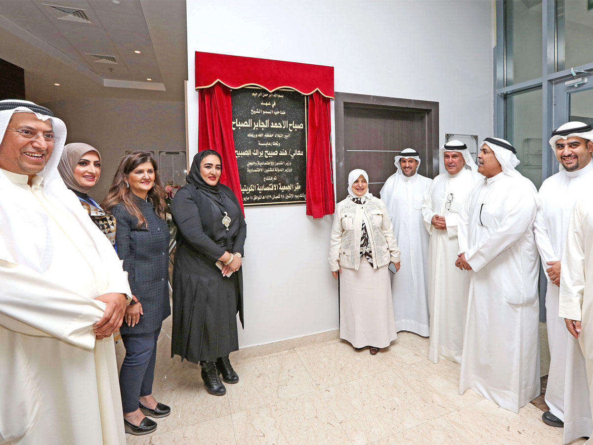 وبينت أن للجمعية عدة نشاطات اقتصادية، ورؤى الدولة تقضي بها ووجودها في خطة التنمية، وتعتبر الجمعية شريكاً أساسياً مع الدولة ممثلة بجميع الجهات، سواء كانت وزارة الشؤون الاقتصادية أو وزارة التجارة أو وزارة المالية أو جهات أخرى لتدعيم النشاط الاقتصادي في دولة الكويت.ولفتت إلى أن هناك عدة بنود وإيرادات غير النفطية "نود أن نشجعها للاستفادة القصوى من الموارد المتوافرة في الكويت"، مشيرة إلى أن "الجمعية الاقتصادية" إحدى أعرق الجمعيات في دولة الكويت، التي يشهد لها بالأنشطة المختلفة سواء بإشراف وزارة الشؤون أو بتعاونها مع كل جهات الدولة، مبينة أن هذا التكامل بين القطاع الخاص والمجتمع المدني والجهات الحكومية سيؤتي ثماره في نتاج تنموي تشهد له البلاد في الأعوام القادمة. من جانبه، قال رئيس مجلس إدارة الجمعية الاقتصادية الكويتية، فيصل المدلج، في كلمته خلال افتتاح المقر الجديد للجمعية، إنه منذ تأسيسها عام 1970 وحتى الآن تعاقبت على مجلس إدارة الجمعية شخصيات عامة وجليلة أسهمت في إنجاز مسيرتها وتحقيق أهدافها بكل جد وإخلاص.وأضاف المدلج، أن هذا الصرح يخدم جميع شرائح المجتمع الكويتي عموماً والمهتمين بالشأن الاقتصادي خصوصاً، فضلاً عن أنها شريك فعال في عملية التنمية الاقتصادية، ودعم وتعزيز الوعي الثقافي، إضافة إلى مد جسور التواصل مع المؤسسات والمنظمات الاقتصادية الدولية.وتقدّم إلى كل من ساهم وتبرع ورعى عملية بناء وتشييد المقر الجديد للجمعية بعظيم الشكر والامتنان لدعمهم المستمر لاستكمال مسيرة عملها.من ناحيته، قال الرئيس التنفيذي في مجموعة الساير القابضة، مبارك الساير، وهي الراعي الرسمي لمبنى الجمعية الجديد، إن المجموعة ومنذ تأسيسها في الخمسينيات تحمل على عاتقها دعم كل ما فيه مصلحة الكويت والاقتصاد الوطني كرائد في السوق الكويتي.وأضاف الساير، أنه "جاء دورنا، كقطاع خاص، في رعاية الكثير من المشاريع والبرامج البارزة وتنفيذ أهداف التنمية المستدامة تماشياً مع رؤية الكويت 2035 التي تبناها صاحب السمو أمير البلاد الشيخ صباح الأحمد الجابر الصباح".وأكد أنه من هذا المنطلق جاء دعم "الساير" للمبنى الجديد للجمعية الاقتصادية الكويتية، مشدداً على أن الشركة ستعمل معها يداً بيد على تطوير مفاهيم الاقتصاد المسؤول والتنمية المستدامة، ودعم الابتكار، وتنظيم العديد من الدورات التدريبية لتعزيز روح الابتكار في السوق الكويتي وبين أفراد المجتمع، لتبقى الكويت مثالاً يحتذى به في كافة المجالات عربياً ودولياً.وتم في نهاية الحفل تكريم مجموعة الساير القابضة، ووزارة التجارة والصناعة ومؤسسة الكويت للتقدم العلمي، ود. فيصل الكاظمي، وعالية الكاظمي، وممثل الصندوق العربي للإنماء الاقتصادي والاجتماعي، وساير الساير ممثلاً غرفة التجارة والصناعة، إلى جانب تكريم أعضاء لجنة مقر الجمعية، فيصل البدر، وخالد المطيري، ومهند الصانع، وحسام البسام، ودار "آي جي" للاستشارات الهندسية.