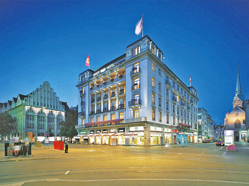 "سافوي"... أحد أشهر الفنادق في سويسرا، يقف، وسط زيوريخ، مزهواً بما فيه من طراز كلاسيكي عريق، وأثاث نادر، وغرف أنيقة، وخدمة راقية.