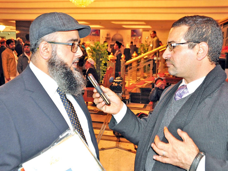 - المسألة ليست وجود 2000 مسجد في بريطانيا، فعدد المسلمين قليل بالنسبة لمجموع الشعب البريطاني، ولكن نجد في العالم كله وليس فقط في بريطانيا.هناك مشكلتان؛ الأولى هي التطرف في الدين من بعض المسلمين مثل "داعش" و"القاعدة"، وهذا يسيء لصورة الإسلام، والمشكلة الثانية التطرف عند غير المسلمين، ومن هنا نحن نعمل ضد ما يسمى بـ "الإسلاموفوبيا"، لذلك لابد للمسلمين ونحن وكل المؤسسات العمل بالحكمة والموعظة الحسنة والمجادلة بالتي هي أحسن لتحسين صورة الإسلام.• كيف يتم ذلك؟- كل مؤسسة لها وسائلها، فنحن كفرع رابطة نعمل مؤتمرات يحضره المسلمون وغير المسلمين للتعريف بوسطية الإسلام ضد التطرف والإسلاموفوبيا، ثم هناك كتب نؤلفها عن وسطية الإسلام مثل أول كتاب بالإنكليزية ضد تنظيم داعش بعنوان "داعش دولة الجاهلية".• هل هناك حوار بين الإسلام والأديان الأخرى؟