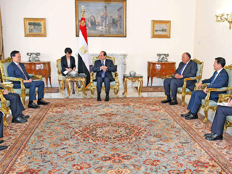 في سياق آخر، لقي 4 مسلحين مصرعهم في اشتباك مع قوات الشرطة بمنطقة جبلية في أسيوط، كانت معلومات وردت لأجهزة الأمن تفيد بتكوين 4 أشخاص خلية إرهابية بمساكن السوهاجية بالغنايم، لاستهداف مناطق حيوية، وتعكير احتفالات 30 يونيو. وقال مصدر أمني، إن «الفرق الخاصة بوزارة الداخلية داهمت منطقة السوهاجية فجر أمس، وتم الاشتباك مع العناصر الإرهابية، وتمكنت من قتلهم، ونقلت الجثث تحت حراسة مشددة إلى مستشفى أسيوط الجامعي».قضائياً، قضت محكمة جنايات القاهرة، أمس، بإحالة أوراق 6 متهمين إلى فضيلة مفتي الديار المصرية، لاستطلاع الرأي الشرعي بشأن إصدار حكم بإعدامهم، وذلك في قضية اتهامهم بالتعدي على كمين شرطة الخصوص، وحددت جلسة 28 أغسطس للنطق بالحكم.وأمرت نيابة غرب القاهرة الكلية بحبس ٤ أمناء شرطة من قوة قسم حدائق القبة، 4 أيام على ذمة التحقيقات، في واقعة مقتل المحتجز داخل ديوان القسم. وكانت النيابة العامة أمرت في وقت سابق بحبس كل من رئيس ومعاون مباحث قسم حدائق القبة، وأسندت النيابة لكل من رئيس مباحث قسم شرطة حدائق القبة، ومعاون مباحث القسم، تعذيب المجني عليه، ما أفضى إلى وفاته، واستعمال القسوة والعنف والتزوير في محررات رسمية.إلى ذلك، وصف المتحدث الرسمي باسم الرئاسة المصرية السفير بسام راضي العلاقات المصرية- الصينية حاليا بأنها وصلت إلى حد «الشراكة الاستراتيجية»، جاء ذلك بعد استقبال الرئيس عبدالفتاح السيسي، أمس، عضو المكتب السياسي للجنة المركزية للحزب الشيوعي الصيني، تشن مينار، بحضور وزير الخارجية سامح شكري، وعدد من مسؤولي الحزب الشيوعي الصيني، بالإضافة إلى سفير الصين بالقاهرة. وشدد السيسي خلال اللقاء على أن «مصر تتعامل مع أزمات المنطقة وفق مبدأ راسخ إطاره التوصل إلى حل سياسي بالتوازي مع دعم المؤسسات الوطنية، ومحدداته عدم التدخل في الشؤون الداخلية للدول واحترام سيادتها، والحفاظ على وحدة أراضيها، وكذا احترام إرادة الشعوب ودعم الجيوش الوطنية، التي تعد المسؤول الأول عن حفظ الأمن وتحقيق الاستقرار».
