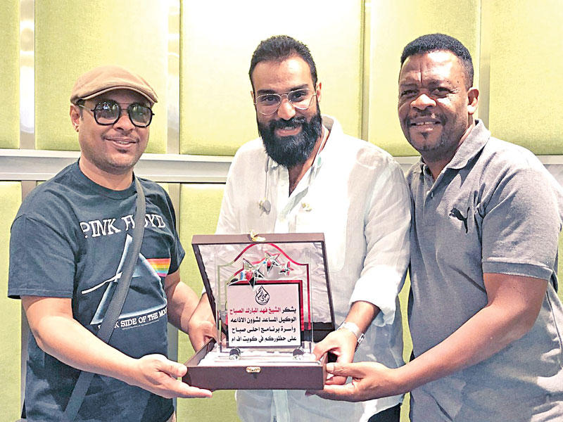 استضاف برنامج «أحلى صباح»، أمس، أعضاء فرقة «الإخوة البحرينية»، عبر أثير «كويت أف أم»؛ وجيه وحسن وسلطان وعبدالله وباسم، في حوار حول الفرقة وانضمام عناصر جديدة إليها، ومشاركتها الأخيرة في مهرجان الموسيقى الدولي الـ 21.وقد عبَّر عضو الفرقة وجيه حسن، عن سعادته الكبيرة بلقاء الجمهور الكويتي، وهو متذوق للفن الموسيقي، وكان متفاعلاً مع حفل «الإخوة البحرينية». وتخلل اللقاء عدد من الأغنيات على الهواء بصوت عبدالله مطر.وكرَّم البرنامج بالإنابة عن الوكيل المساعد لشؤون الإذاعة، الشيخ فهد المبارك، بدرع تذكارية، تسلمها وجيه حسن وسلطان سالم، تقديرا لجهود الفرقة، وتلبيتها دعوة إذاعة الكويت.