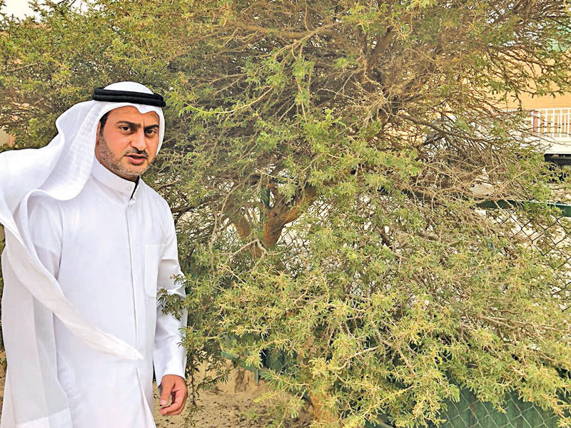 وبيَّن أنه زرع الأشجار البرية كالمرخ والطلح النجدي والطلح العراقي وطلح الكنهبل وشجرة العشر والأراك والرمث والعرفج وطلح الفتنة والسدر البري والعوسج، موضحاً أن هذه الأشجار لا تستهلك المياه وهي قاعدة أساسية للتنوع في الحياة الفطرية، فإن أوجدت الشجرة فإنك أوجدت الحياة بشكل متكامل. كذلك أكّد أن هذة الأشجار البرية تسهم في وقف زحف الرمال بأقل التكاليف ومن دون جهد أو اهتمام مستمر، خصوصاً أننا نشهد في هذا الوقت من السنة هبوب الرياح الشمالية الغربية المثيرة للغبار، والتي تسببت في إغلاق كثير من الطرق السريعة وبحوادث مرورية، والسبب الرئيس انعدام زراعة الأشجار بالقرب من هذة الطرق. تابع: «تعمل وزارة الأشغال مجتهدة منذ سنوات بفرقها كافة والإطفاء والبلدية على إزالة الرمال المتراكمة والمعروفة بالسافي بشكل مستمر، ولكن للأسف المشكلة تتفاقم ولا يمكن إيقافها إلا بزراعة الأشجار البرية التي تعتبر مصدات طبيعية للرياح كالأثل والأراك والغاف والحمض بأنواعه. ويمكننا الاستفادة منها مستقبلاً وخلال 3 سنوات إذا تم تقليمها كأعلاف حيوانية تُقدم كدعم لأصحاب المواشي، ما يُخفض من تكلفة ميزانية الأعلاف المدعومة والمقدمة من الدولة لأصحاب الحلال،إضافة إلى استفادة النحالين منها فهي تشكل مرعى ممتازاً في موسم تفتح أزهارها للنحل، ويستفاد أيضاً من أخشابها للصناعة في النجارة وفي استخراج بعض المنتجات الطبية والتجميلية. إضافة إلى تقليص ميزانية رفع الرمال المتراكمة والتي تطرح لها مناقصات بشكل سنوي ومرتفع». وتطرق العامر إلى ضرورة إطلاق كثير من الطيور البرية كالحجل والدجاج الحبشي والأرانب البرية في المواقع المخصصة للتحريج، وسن قوانين ووضع عقوبات لمنع صيدها والعمل على إكثارها، ما يشكل خط إنتاج للأمن الغذائي كما هو معمول في الإمارات الشقيقة.تنظيم الرعي