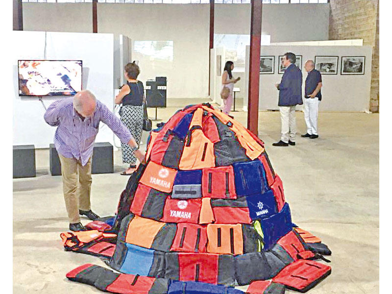 تحت عنوان «لننقذ أراوحنا»، يعبّر عمل تركيبي عن رد فعل الفنّان الشاب أكلياس صوراص (ولد في لندن ويقيم ويدرس حالياً في أثينا) تجاه أزمة اللاجئين العالمية الحالية، فيقترح إعادة استخدام سترة النجاة التي أصبحت رمزاً بصرياً لأزمة اللاجئين في وسائل الإعلام، كوسيلة لتأمين مراكز إيواء عمليّة وغير مكلفة ومؤقتة، على شكل أكواخ الإسكيمو، للنازحين.يقول في هذا السياق: «عندما تحمل السترة في يدك وعليها رائحة البحر، تختلف نظرتك إلى الأمور وتلاحظ أنّ كلّ سترة تخبّئ حياة شخص ما. ليس مسموحاً بعد الآن أن يبقى النازحون والمشرّدون والمحرومون بعيدين عن الأنظار والأذهان؛ فهذه تحديات عالمية تمسّنا جميعنا وينبغي علينا محاولة حلّها لمصلحة الجميع».يتألّف تركيب الفنّان الهندسي الذي ابتكره في الخامسة عشرة من عمره، من 35 سترة نجاة، ومشابك فيلكرو وستّة أعمدة هندسية، وقد عرض في المتاحف والمعارض الفنيّة حول العالم، وكانت انطلاقته بمناسبة «اليوم العالمي للّاجئين» وبدعم من المفوضية السامية للأمم المتّحدة لشؤون اللاجئين (UNHCR).«مقام»