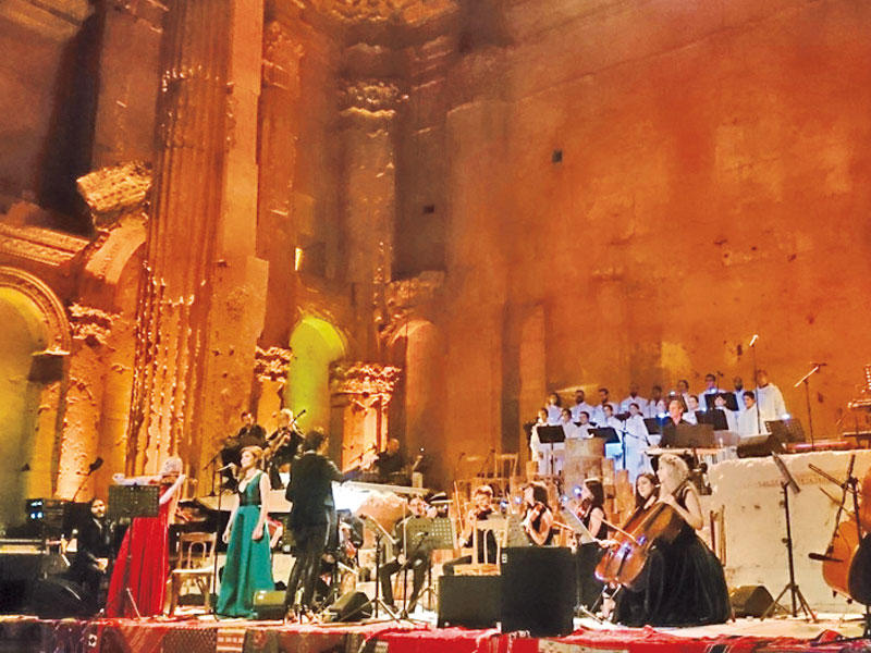 قبيل افتتاح مهرجانات بعلبك الدولية في العشرين من يوليو الجاري مع «بعلبك تتذكر أم كلثوم»، شهد معبد باخوس في القلعة الضخمة حفلة موسيقية قدّمها الفنان اللبناني خالد مزنّر، هدفها دعم لجنة مهرجانات بعلبك التي بدأت الصعوبات المادية تثقل كاهلها، رغم دعم وزارات لها من بينها الثقافة والسياحة، لا سيما أن ضخامة البرنامج الذي تحضره يفرض عليها نفقات باهظة، مع ذلك تحرص على الحفاظ على مستوى رفيع يليق بهذه القلعة الضخمة حارسة التاريخ الأبدية.