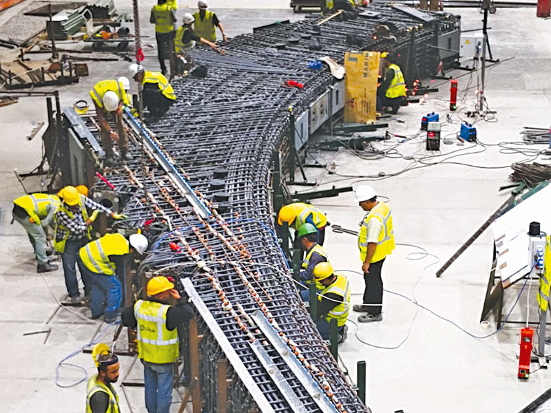 وتفقد خلال الزيارة التجهيزات التي قام بها المقاول والتي حولت المشروع إلى أكبر وأضخم ورشة عمل على مستوى الدولة والمنطقة الخليجية، حيث يضم موقع العمل 6 مصانع خرسانة لتصنيع الخرسانات مسبقة الصب لأعمال الأسقف، تقع على مساحة 40 ألف متر مربع.وتابع الرومي ورش الأعمال الحديدية التي تقع على مساحة 37 ألف متر مربع، وتحتوي على 99 رافعة، يصل ارتفاعها إلى 185 قدما، إضافة إلى 45 رافعة ثابتة عملاقة تستخدم في رفع قطع السقف البالغ عددها 39 ألفا، من خرسانة مسبقة الصب تستخدم في تصنيعها أحدث وسائل التكنولوجيا العالمية. يذكر أن عدد العاملين في المشروع حاليا من المهندسين والفنيين والعمال يزيد على 4 آلاف، يقومون بخطى حيثية لإنهاء المشروع قبل برنامجه الزمني التعاقدي. وصاحب الوزير في الزيارة وكيل وزارة الأشغال العامة المهندسة عواطف الغنيم، والوكيل المساعد للجهاز الاستشاري للوزير المهندس خالد الخزي.