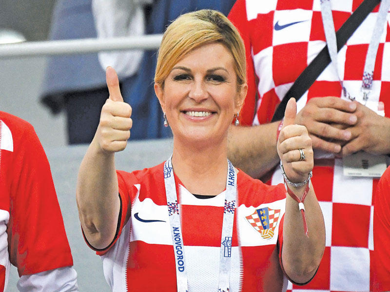 مثلما خطف منتخب بلادها الأضواء من منتخبات عالمية، خطفت رئيسة كرواتيا الحسناء كوليندا كيتاروفيتش عدسات المصورين ووسائل الإعلام في مونديال روسيا الذي يختتم مبارياته بعد غدٍ، بلقاء من المرجح أن تحضره لمؤازرة منتخبها من أجل إيقاف صياح الديوك الفرنسية وانتزاع لقب المونديال من مخالبها، بعد إطاحته إنكلترا في الدور نصف النهائي. طرحت الرئيسة الكرواتية جانباً ثياب الدبلوماسية، ولم تفكر كثيراً في الاعتبارات البروتوكولية، وسافرت إلى روسيا بطائرة عادية على حسابها الخاص مع جمهور بلادها، مفضلة ارتداء قميص المنتخب بلونيه الأحمر والأبيض.في مباراة كرواتيا بالدور ربع النهائي أمام روسيا مستضيفة البطولة، لفتت كيتاروفيتش، التي وصلت منذ أربعة أشهر إلى عتبة الخمسين من عمرها، الأنظار عندما جلست بثياب غير معهودة في منصة كبار الزوار، وإلى جانبها رئيس الوزراء الروسي، ديمتري ميدفيديف، حيث كان كلٌّ منهما يصافح الآخر عقب تسجيل منتخبه هدفاً، غير أن ركلات الترجيح ابتسمت في النهاية للحسناء الكرواتية، التي انتفضت فرحاً وتراقصت عقب الفوز، في حين أشاح ميدفيديف بوجهه، بعد أن بدت عليه آثار الهزيمة.