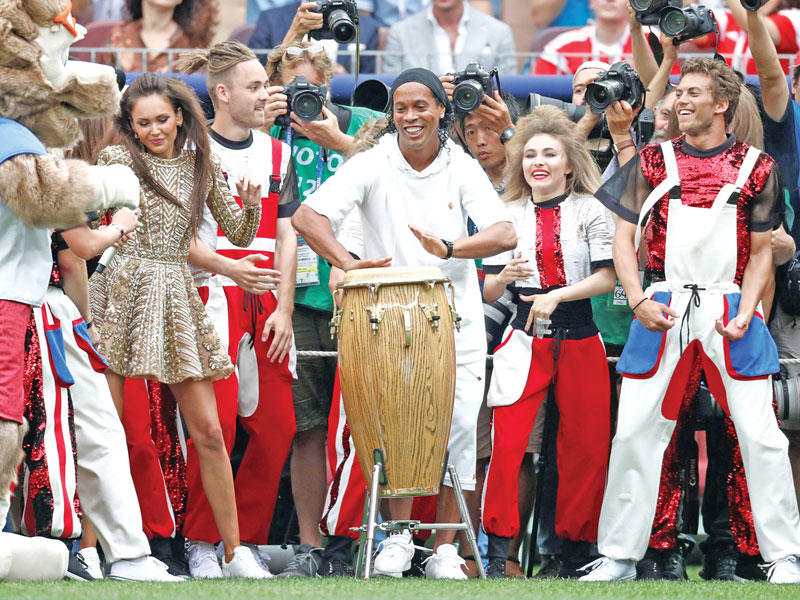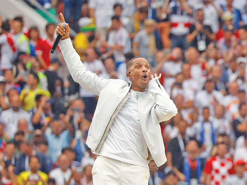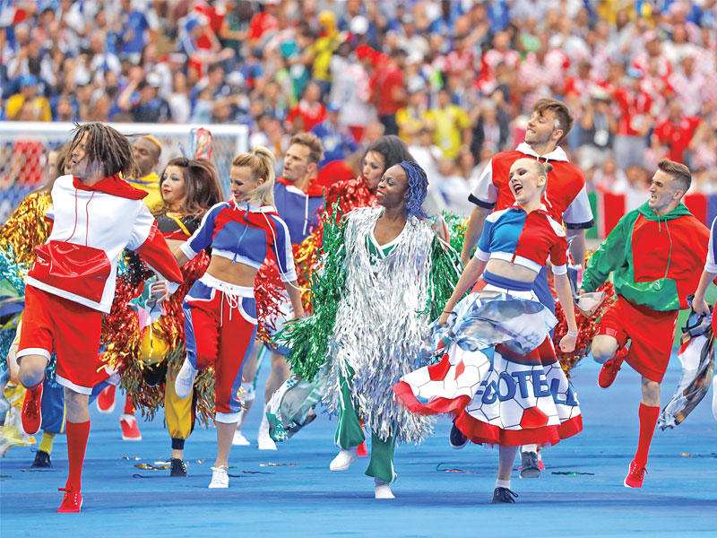 أقيم الحفل الختامي لبطولة كأس العالم لكرة القدم 2018 التي اختتمت مبارياتها أمس، بملعب لوجينيكي في روسيا، قبل انطلاق المباراة النهائية بين فرنسا وكرواتيا.وتجمع كل من الممثل الأميركي ومغني الراب ويل سميث والمغني الأميركي نيكي جام والمغنية الألبانية إيرا إستريفي لينشدوا الأغنية الرسمية للبطولة "ليف ايت اب".وشارك ما يقرب 800 شخص في الحفل الذي استمر 15 دقيقة، والذي أظهر الروسية آيدا جاريفولينا وهي تغني "كالينكا"، مع انضمام النجم البرازيلي السابق رونالدينيو بطبل السامبا، مع هتافات ضخمة من المشجعين، بينما كانت التميمة الرئيسية للمونديال "زابيفاكا" ترقص مع الراقصين.