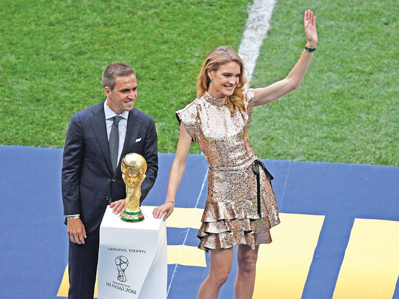 وحمل فيليب لام، قائد المنتخب الألماني الفائز بلقب كأس العالم في 2014 وعارضة الأزياء الروسية ناتاليا فوديانوفا، كأس العالم إلى الملعب في نهاية الحفل، وكان اللاعبون ينتظرون في النفق المؤدي للملعب. وانضم إيمانويل ماكرون رئيس فرنسا، وكوليندا كيتاروفيتش رئيسة كرواتيا إلى الرئيس الروسي فلاديمير بوتين بين الضيوف الذين يتابعون المباراة.وكان من بين الحضور أيضا توماس باخ، رئيس اللجنة الأولمبية الدولي، والشيخ تميم بن حمد أمير قطر، البلد المضيف للمونديال المقبل في 2022.وبعيدا عن امتلاء الملعب الذي يتسع إلى 78011 متفرجا، فقد تابع مباراة النهائي نحو مليار مشاهد عبر التلفزيون في جميع أنحاء العالم.وذكرت الرئاسة الروسية في بيان أن الحفل الذي أقيم على ملعب لوجنيكي في العاصمة الروسية حضره 14 من قادة دول العالم، أبرزهم اضافة الى الرؤساء المذكورين سابقا، كل من رئيس هنغاريا وأرمينيا وبيلاروسيا والغابون ومولدوفا وفلسطين والسودان.وشهد الحفل عروضا راقصة تمثل التراث الروسي بمشاركة نحو خمسة آلاف راقص وراقصة.
