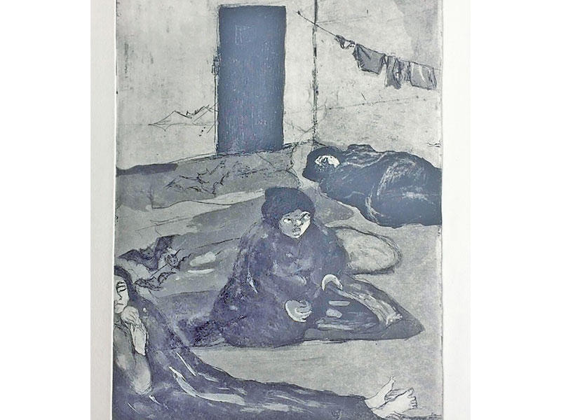 تعرض عزة أبو ربيع (مواليد سورية 1980)، عشرة رسوم مطبوعة على الخشب منفذة في بيروت عام 2018، مباشرة بعد خروجها من سجون النظام. بالنسبة إلى الفنانة الشابة التي قضت أربعة أشهر في زنزانة، تلك الليالي المئة والعشرين هي نسخة طبق الأصل، تعادل انتظاراً طويلاً. «خلال الليل، كنت أرسل أفكاري صوب الذين تربطني بهم معرفة، وهم يجهلون مكان وجودي؛ كل دقيقة كانت مثل البداية بالنسبة إلي؛ ثم يأتي النهار ويستولي علي الأمل بالانعتاق».