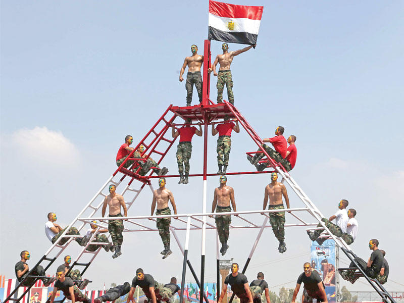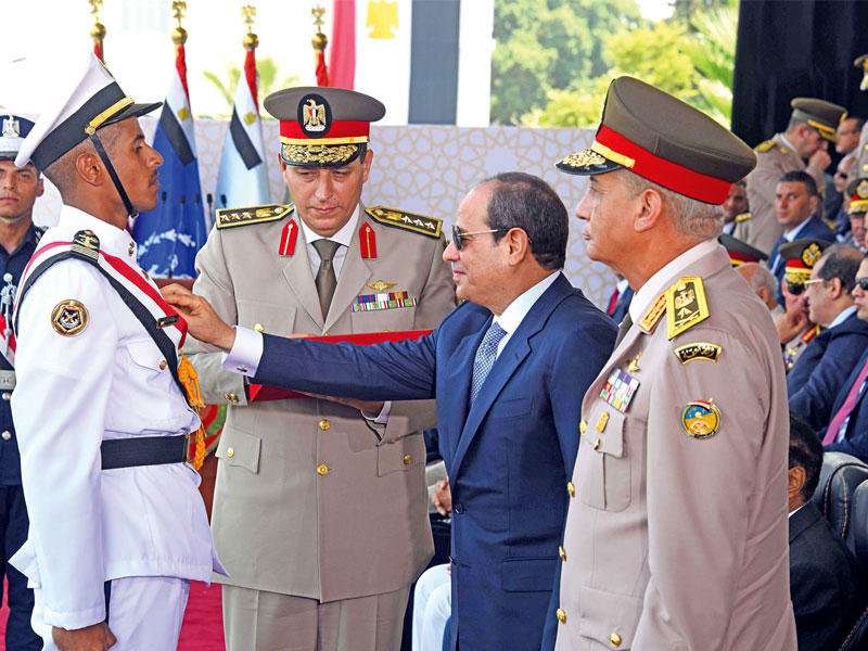 حضر الرئيس المصري، أمس، الاحتفال بتخريج دفعات جديدة من الكليات العسكرية والذكرى الـ 66 لثورة يوليو، وألقى خطاباً في الاحتفال، شدد فيه على خطورة التحديات التي تواجهها مصر، وحيا الرئيسين جمال عبدالناصر وأنور السادات، كما كرّم عدداً من أبطال الثورة والقادة العسكريين.