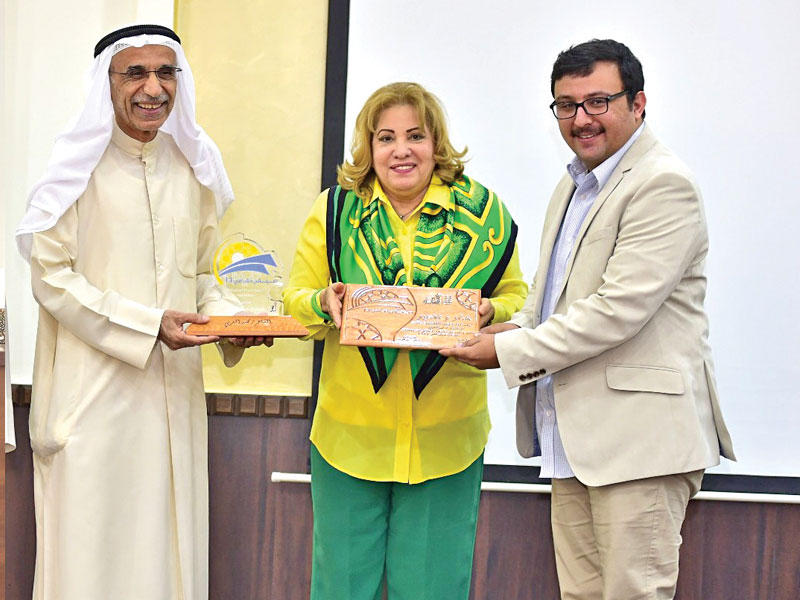 استلهام الحياةوتنقل المغربي بين قصيدة وأخرى من أجل استلهام الحياة في أشكالها المختلفة، ثم الوصول إلى حالة شعرية متفاعلة مع معطيات الحياة، وقرأ في الأمسية نصوصاً من ديوانه الأخير "أخذته الصيحة"، وهي عبارة عن قصائد قصيرة اتسمت بالتنوع والقدرة عن كشف المسكوت عنه ليقول: الطفلةُ المريضةُ تبتسم كلّما حرّك هواء التكييف/العنكبوتَ المتدليةَ من السقف بخيطها الحريريّ/ بدتْ لها- عكس ما يُشاع عنها من قصص مرعبة- خرقاءَ بلهاءَ، /نقطةً سوداءَ تتعلق بخيط واهٍ ويؤرجحها هواء بارد. هكذا تدفقت اللغة الشعرية بتكيف متقن خلال ما قدمه المغربي من قصائد قصيرة ذات جمل محددة لكنها ذات معانٍ بعيدة، ضاربة في عمق الحياة ليقول:اليوم سرقتُ مالاً كان في جيب أبي، / دفعتُه كله /صدقةً للأطفال في البلاد المجاورة/البلاد التي تشتعلُ بالحرب /الحرب التي تجلب لأبي المال/المال الذي كان في ذلك الجيب. ومن اللافت أن قصائد المغربي بمفرداتها- رغم هدوء مفرداتها- إلا أنها تهدر في وجه الظلم، وتدافع في الأساس عن السلام، وتسعى إلى أن تقر الأمان كشكل يجب أن نراه في كل بقعة على الأرض ليقول: صديق طفولتي الوحيدُ /ابن العائلةِ الثريةِ /كان يقاسِمُني طعامَهُ وأحلامَهُ/وبعدما كُبرنا/صارَ يقاسمني طعامي وأحلامي.الجدير بالذكر أن المغربي شاعر وروائي حصل ديوانه "هو المطر" على جائزة الدولة التقديرية لعام 2008. كما حصل على جائزة بلند الحيدري للشعراء العرب في مهرجان أصيلة الثقافي- المغرب 2011. ومن إصدارته "على العتبات الأخيرة" ديوان شعر، و"أخبئ وجهكِ فيّ وأغفو"، ديوان شعر، صدر عن المؤسسة العربية للدراسات والنشر، في بيروت، و"خارج من سيرة الموت"، قصيدة طويلة، عن المؤسسة العربية للدراسات والنشر، بيروت، و"هو المطر"، قصيدة طويلة عن دار الفارابي، بيروت،"ساق العرش"، رواية، صدرت عن المؤسسة العربية للدراسات والنشر، بيروت.اللغة الشعرية في المقابل، تبدت اللغة الشعرية عند الفليكاوي متصارعة مع الواقع ومناوشة له في سياق شعري مفعم بالحيوية والحركة، كما اتسمت مفرداته بالتنوع الذي قرر فيه الشاعر أن يكون مسيطراً على رؤيته، من أجل إظهارها جلية في أشكال إنسانية ناطقة بالجاذبية. ليقول في قصيدة له:واترك لقافية الألفاظ سر شجًي/من الغموض ومعنى غير مشروح/كأنه الروح في الإنسان ما فتئت/مفتاح سرٍ للغز غير مفتوح.وتناول الفيلكاوي في قصائده الكثير من المضامين تلك التي استطاع أن يتواصل فيها مع الواقع، عبر ممرات خيالية، تتدفق فيها المشاعر بأكبر قدر من التكثيف ليقول:تُغالبُ تَحنانَ الفؤادِ المطامحُ/ وهيهات أن تُخفي الشجيَّ الملامحُثم استطرد الشاعر في وصفه المتقن ليقول: لو أنِّيَ والموتُ التقينا بمشهدٍ/رأيتَ خصيمًا للخصيمِ يُصافحُالجدير بالذكر أن الفيلكاوي الذي شارك في الكثير من الأمسيات الشعرية داخل وخارج الكويت، لديه مخزون شعري متوهج بالحيوية والحركة، في اتجاهات عدة، ومن ثم فإن لغته الشعرية، تأتي دائماً في أنساق خيالية تبدو فيها المشاهد مزدانة بالتأمل والدعوة إلى التفكير، خصوصاً قصائده التي يطمح من خلالها إلى طرح الأسئلة في صيغ شعرية جديدة.وفي ختام الأمسية كرمت الأديبة ليلى العثمان ود. سالم خداده، الفيلكاوي والمغربي.