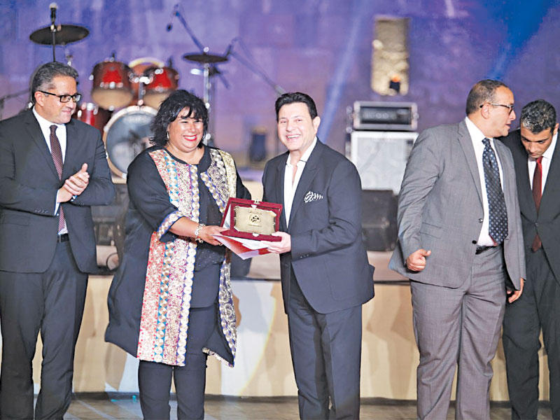 وكان من بين المكرمين المطرب مدحت صالح، وعازف الكلارنيت محمد حمدي، وعازف الفيولا علاء خليل، والناقدة كريمان حرك. وأحيت الجزء الأول من الحفل فرقة الأطفال الشباب الصينية التي قدمت مجموعة من الاستعراضات والأغاني الشعبية المستمدة من الفلكور، إضافة إلى بعض الرقصات على ألحان مصرية قديمة وحديثة، ومنها رقصة يانغ يانغ الشمالية "نيو نيو" (فتاة صغيرة)، ورقصة المرأة "سلة صغيرة محمولة على ظهره"، والرقص المنغولي "نسر البراري" الموسيقى، ورقصة التبت "غولدن الشمس"، ومجموعة من الأغاني منها "النيل"، والرقص المصرغ "فتاة جميلة سيبيريا"، والعود الصيني، والرقص الشعبى بعنوان "أنا أحب البيت القديم لجدي"، و"شمسي الحمر"، ومياو رقصة "مياوهوا شينيو"، وشينغيانغ الويغورية الرقص "فتاة صن شاين".وفي الجزء الثاني، بدأ أمير الغناء العربي هاني شاكر حفله بأغنية "بلدي"، التي رددها قبل نحو 30 عاما بالاشتراك مع المغني محمد ثروت، وهي من كلمات عبدالرحمن الأبنودي، وألحان جمال سلامة. ووجّه الشكر للدكتورة إيناس عبد الدايم على تكريمه خلال حفل الافتتاح، منوها أنه وسام على صدره، كما أعرب عن تقديره للمجهود الذي تبذله الوزيرة.كما أعرب عن سعادته بوجوده وسط هذا الحشد الجماهيري الكبير الذي تخطى الآلاف، متمنيا لهم وقتا ممتعا في الحفل الذي قدّم فيه باقة من أشهر أغانيه الوطنية والرومانسية، التي تمثل محطات مهمة في مشواره الفني منها: "انت ماشي في مصر، بحبك أنا، بعد حبك، لو رحت بعيد، وعد مني، كل ليلة، يا ريتني مع قلبك، أنا قلبي ليك، غلطة، لو بتحب، لسه بتسألي، علّي الضحكاية، مسا النور والهنا، التوبة، جانا الهوى، يا حبيبتي يا مصر". وسبق صعود هاني شاكر عزف للفرقة الموسيقية بـ"ميدلي" لأغاني الفنان منها: "ولو كان بأمري، وعلّي الضحكاية". يذكر أن المهرجان يستمر حتى السابع عشر من أغسطس الجاري.
