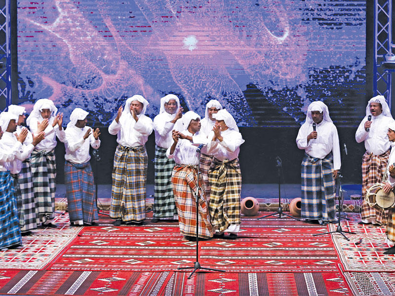 استحضرت «قلالي» البحرينية، أمس الأول، الفنون البحرية العريقة، على مسرح عبدالحسين عبدالرضا غناءً ورقصاً.