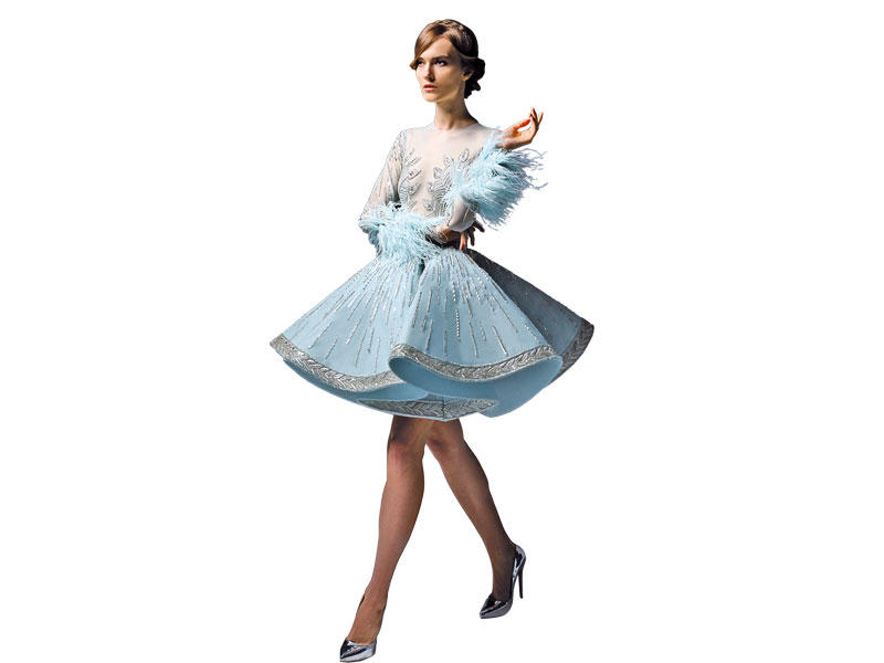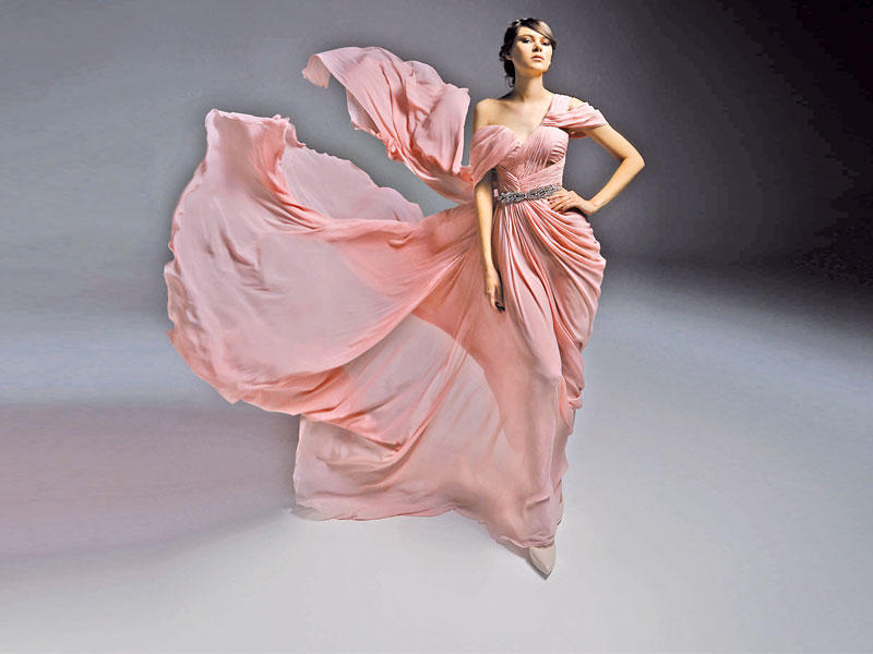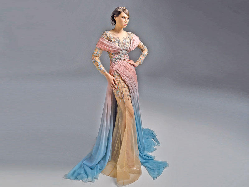 الروح الملكية اليونانية نفسها في المجموعة المؤلفة من 33 قطعة، تنسحب على فستان الزفاف الذي أرادته دار Marwan & Khaled ملوكياً، وامتداداً لحقبة الجمال والفخامة الأوسع حضوراً في التاريخ، فاختاره المصممان بلون الـ«أوف وايت»، وتميز بشغله اليدوي وتفاصيله الدقيقة التي أضفت عليه طابعاً ملوكياً.