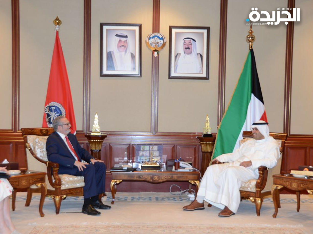 بحث نائب رئيس مجلس الوزراءووزير الدولة لشؤون مجلس الوزراء الكويتي أنس الصالح مع سفير الولايات المتحدة الأمريكية لدى الكويت لورانس سيلفر مان اليوم الاحد سبل تعزيز العلاقات الثنائية "المتميزة" بين البلدين الصديقين في كافة المجالات.وذكر بيان صحفي صادر من مكتب وزير الدولة لشؤون مجلس الوزراء ان الوزير الصالح استعرض مع السفير سيلفر مان خلال استقباله له في مكتبه بقصر السيف عددا من المواضيع ذات الاهتمام المشترك المتعلقة بتعزيز التعاون ودعم روابط الصداقة بين البلدين.