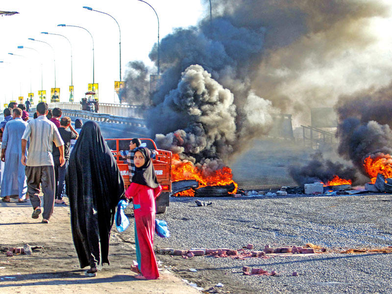 وجاءت الاحتجاجات عشية انعقاد البرلمان العراقي الجديد في ظل غموض يسيطر على المشهد السياسي وتنافس بين تيار مؤيد لإيران وآخر تدعمه الولايات المتحدة ودعوات لتكوين تحالف نيابي عراقي يتخطى حدود الطائفية والعرقية.وكشفت تقارير أمس، عزم النائب عن محافظة نينوى أحمد الجبوري، ترشيح نفسه لرئاسة مجلس النواب، في خطوة أكد أنها "بعيدة عن المحسوبية والمحاصصة" ودون تفاهم بين الكتل السياسية.وفي وقت سابق، جدد زعيم التيار الصدري، مقتدى الصدر، الذي حصدت قائمته غالبية أصوات الناخبين في الانتخابات البرلمانية موقفه بعدم المشاركة في حكومة تدعو إلى المحاصصة والطائفية والعرقية.وقال الصدر على "تويتر"، مساء أمس الأول: "لن نعود إلى المربع الأول ولا عودة للمحاصصة والطائفية والعرقية والفساد، وإن عادوا فلن نشاركهم ولن نشركهم".وأضاف، رجل الدين المعتدل، سنذهب إلى "المعارضة عبر قبة مجلس النواب وحكومة ذات قرار عراقي تخدم المواطن عبر وزراء تكنوقراط".على الجانب الآخر، تعهد الرئيس العراقي فؤاد معصوم بالمضي نحو عقد أولى جلسات البرلمان الجديد في موعدها وفق الإطار الدستوري.وأعلنت الخارجية العراقية أمس، رفضها التدخلات الخارجية في الشأن العراقي الداخلي ودعت إلى احترام إرادة العراقيين في مسألة تشكيل حكومة وطنية.وذكر المتحدث باسم الوزارة أحمد محجوب أن العراقيين يطمحون إلى حكومة تحقق للشعب تطلعاته في النمو والازدهار مستندة في ذلك إلى رؤية وطنية جامعة مبدأها الدستور والقوانين النافذة. ونوه بالشراكات الاستراتيجية الفاعلة مع بقية الدول وفي مقدمتها اتفاقية الإطار الاستراتيجي مع واشنطن، التي من شأنها تعزيز العلاقات بما يحفظ سيادة العراق.وشهدت الساحة السياسية اتهامات متبادلة بين القوى والمكونات السياسية بالخضوع لتدخلات خارجية في ملف تشكيل الحكومة المقبلة.تراجع ومتنفس