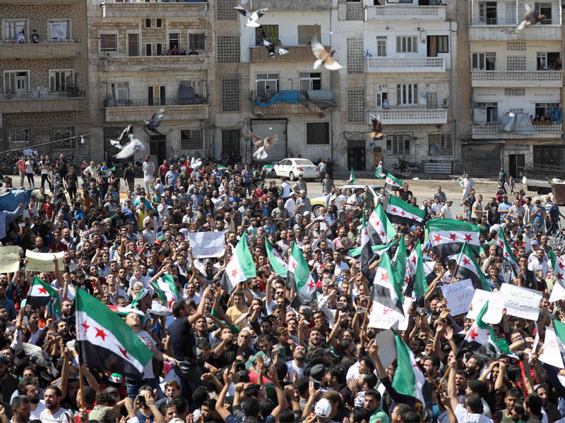 وتزامنا مع قمة طهران، تظاهر آلاف المدنيين في مدينة إدلب في مدن وبلدات عدة في المحافظة، كما في ريفي حلب وحماة المجاورين، رفضا لهجوم وشيك لقوات النظام على مناطقهم، معولين على الجهود التركية لتجنيبهم خيار الحرب. وندد المتظاهرون خلال اعتصامهم بالقمة الثلاثية، مؤكدين أن مصير منطقتهم لا يمكن أن يحدد في طهران. ورفع المشاركون رايات المعارضة السورية، ورددوا هتافات مطالبة بإسقاط النظام.