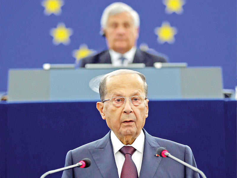 وأضاف جنبلاط: "لا فرق بين أصحاب المولدات وأصحاب السفن التركية. وفي هذه الأثناء يقوم العلوج في شركة الكهرباء والبيئة بسياسة تطهير وانتقام، بئس الساعة التي أتت بهم للحكم. علوج".واستعرت الحملة بين الفريقين من بوابة الوزارات ومؤسسة "كهرباء لبنان" من خلال قرارين جديدين: الأول في وزارة البيئة، إذ أصدر الوزير طارق الخطيب قراراً يقضي بإلغاء القرار رقم 1/78 بتاريخ 16/5/2012، المتعلق بالتحاق الموظف نزار الهاني بلجنة محمية أرز الشوف الطبيعية، وهو اليوم يشغل مديرها. وينصّ القرار الجديد (رقم 1/786) الصادر، أمس الأول، على إلحاق الهاني، وهو الموظف الدائم في وزارة البيئة بصفة اختصاصي بيئي، بالإدارة المركزية للوزارة، على أن يمارس وظيفته في دائرة الأنظمة الأيكولوجية – مصلحة الموارد الطبيعية، طول أيام العمل الفعلي. أمّا القرار الثاني، فجاء في مؤسسة "كهرباء لبنان"، إذ أصدر مديرها العام كمال حايك قراراً بإعفاء مدير الدراسات في المؤسسة رجا العلي من مهامه، ونقله إلى مديرية أخرى داخل المؤسسة.ما حصل مع العلي والهاني أثار بلبلةً واسعة لدى مسؤولي الحزب "الاشتراكي"، حيثُ صنفوا المسألة في "إطار الكيدية السياسية الطائفية"، معتبرين أنّ "ما جرى مؤخراً، أتى رداً على ما قام به وزير التربية مروان حماده، عبر إعفاء مديرة الامتحانات في الوزارة هيلدا خوري (مقربة من التيار الوطني) من مهامها وتعيين أمل شعبان (مسيحية-كاثوليكية) مكانها". يذكر أن العلي والهاني درزيان ومحسوبان على "الاشتراكي".في موازاة ذلك، دعا رئيس الجمهورية اللبنانية العماد ميشال عون، خلال إلقائه كلمة في الجلسة العامة للبرلمان الأوروبي في ستراسبورغ، إلى "تفعيل قرارات الدعم المادي، التي اتخذت خصوصاً في مؤتمر بروكسل، برغم تحفظنا على بعض ما جاء في بيانه الختامي، والمتعلق خصوصا بمسألة العودة الطوعية للنازحين وربطها بالحل السياسي، وانخراطهم في سوق العمل في الدول التي نزحوا إليها. ولا بد من التذكير هنا بأن لبنان هو بلد هجرة وليس بلد استيطان أو سوقا مفتوحة للعمل، وأبناؤه المنتشرون في كل أصقاع العالم، وللقارة الأوروبية منهم نصيب كبير، هم خير شاهد". وختم عون: "لبنان يسعى لتأمين العودة الكريمة والآمنة للنازحين إلى ديارهم، ويرفض أي مماطلة في هذا الشأن، ويؤيد كل دعم لحل مسألة النزوح السوري المكثف إلى أراضيه، على غرار المبادرة الروسية، ويرفض ربطها بالحل السياسي الذي قد يطول أمده".
