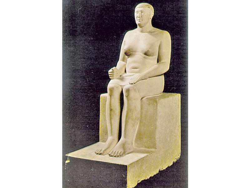 القطعة الثانية، تمثال لمهندس الهرم الأكبر «حم- إيونو»، ويقول الشماع: «خدم هذا العبقري في مدينة ومعبد وإداريات العاصمة المكرَّسة لعبادة رب الشمس إبان الأسرة الرابعة – الدولة القديمة. ورغم عدم معرفتنا الكاملة بالطرائق الباهرة التي استخدمها في بناء هرم الملك «خنوم-خوفو» المشهور بـ«خوفو»، فإننا على علم مؤكد بأنه المسؤول عن وضع نحو مليوني حجر جيري في مبنى هرمي يصل ارتفاعه إلى 146 متراً، وهو الذي خطط هندسياً وجيولوجياً كي تتحمل الأرض في هضبة الجيزة ثقلاً وزنه ستة ملايين طن، هو وزن الأحجار، فضلاً عن الشكل المربع للقاعدة والاتجاهات الأربعة للهرم، صوب الاتجاهات الأصلية (الشمال، والشرق، والغرب، والجنوب).ووجد التمثال طريقه إلى ألمانيا، حيث يقبع الآن داخل متحف Pelizaeus بمدينة هيلديسهايم (Hildesheim 03 كيلومتراً جنوب مدينة هانوفر).عملة كليوباترا