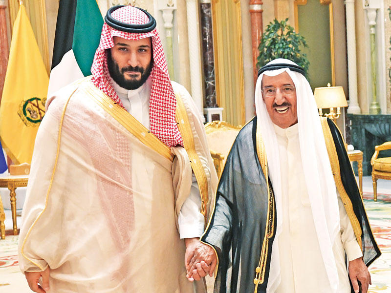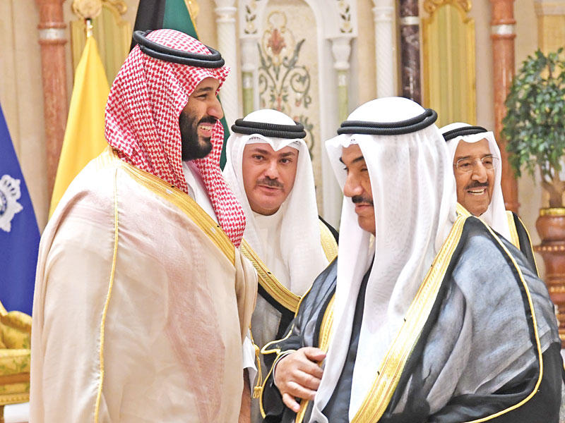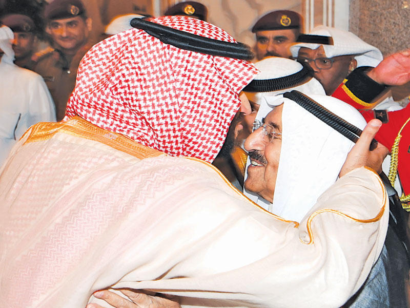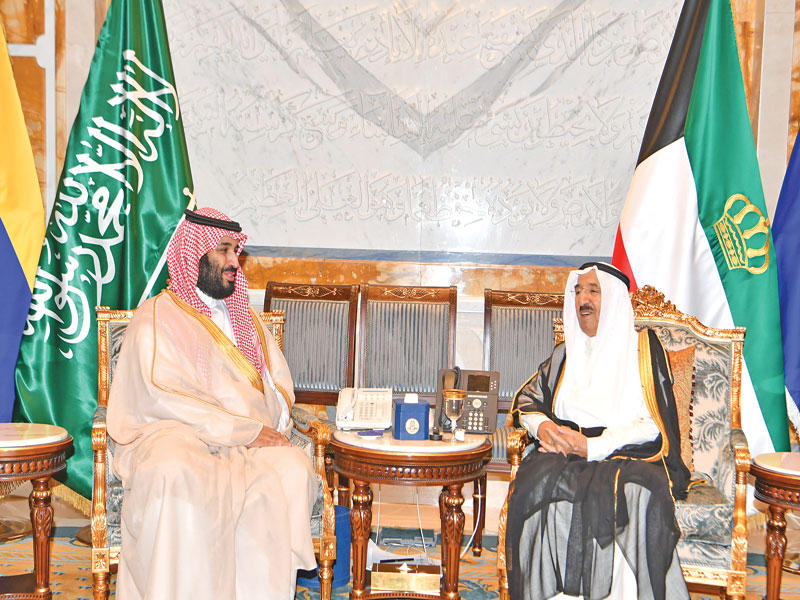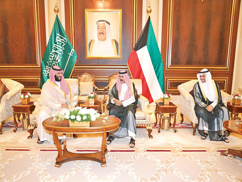 استقبل صاحب السمو أمير البلاد الشيخ صباح الأحمد، بقصر بيان، مساء أمس، ولي العهد نائب رئيس مجلس الوزراء وزير الدفاع في المملكة العربية السعودية الشقيقة الأمير محمد بن سلمان بن عبدالعزيز آل سعود والوفد الرسمي المرافق له بمناسبة زيارته الرسمية للبلاد.وتم خلال اللقاء تبادل الأحاديث الأخوية التي عكست عمق العلاقات التاريخية الطيبة والراسخة بين البلدين والشعبين الشقيقين، وسبل تعزيزها وتنميتها في المجالات كافة بما يخدم مصالحهما المشتركة، والسعي نحو تضافر الجهود لدعم العمل الخليجي المشترك في إطار ما يجمع دول مجلس التعاون الخليجي من علاقات وطيدة، كما تم التطرق إلى آخر المستجدات على الساحتين الإقليمية والدولية.ووصل بن سلمان أمس إلى البلاد في زيارة رسمية، وكان في مقدمة مستقبليه على أرض المطار سمو ولي العهد، ورئيس مجلس الأمة مرزوق الغانم، ورئيس مجلس الوزراء بالإنابة وزير الخارجية الشيخ صباح الخالد، وكبار المسؤولين بالدولة.ورافق ولي العهد السعودي وفد رسمي ضم كلا من المستشار بالديوان الملكي الأمير تركي بن فهد بن عبدالعزيز آل سعود، ووزير الداخلية الأمير عبدالعزيز بن سعود بن نايف بن عبدالعزيز آل سعود، وأمير منطقة الجوف بدر بن سلطان بن عبدالعزيز آل سعود، ووزير الثقافة الأمير بدر بن عبدالله بن فرحان آل سعود، ونائب أمير منطقة نجران الأمير تركي بن هذلول بن عبدالعزيز آل سعود، ووزير الدولة عضو مجلس الوزراء الدكتور مساعد العيبان، ووزير التجارة والاستثمار الدكتور ماجد القصبي، ووزير الخارجية عادل الجبير، ووزير الطاقة والصناعة والثروة المعدنية خالد الفالح، ووزير الاعلام الدكتور عواد العواد.