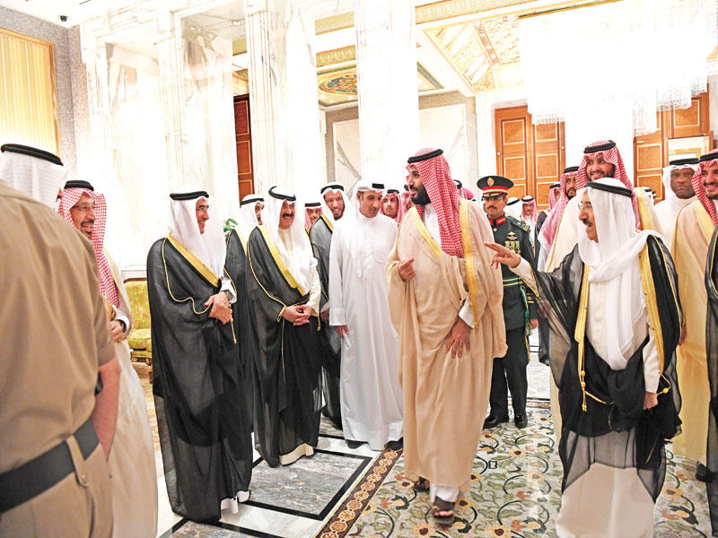 صاحب السمو مستقبلاً، بحضور ولي العهد، بن سلمان في قصر بيان أمس