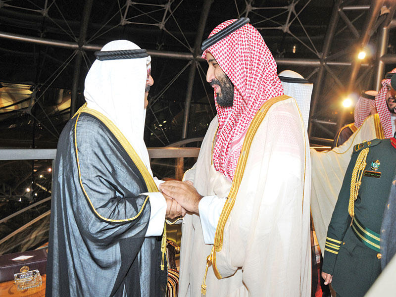 ولي العهد مستقبلاً بن سلمان في المطار بحضور مرزوق الغانم