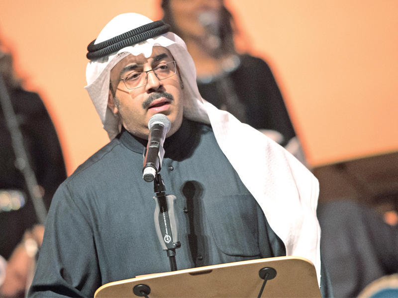 وأضاف: «بتكليف من الإذاعة، أسجل اليوم 3 أغنيات، الأولى وطنية وعنوانها المؤقت «أنا يا وطن»، من كلمات عبدالله العجيل وألحان د. أحمد حمدان، والثانية أغنية عاطفية بعنوان «يعني أفهم» كلمات منصور الواوان وألحان عبدالله القعود، والثالثة أيضا عاطفية «ما فات خله وتعال» كلمات فواز الناصر وألحان محمد البعيجان، وتصدى د. أحمد حمدان للتوزيع الموسيقي لهذه الأعمال، والتنفيذ براك المطوع.