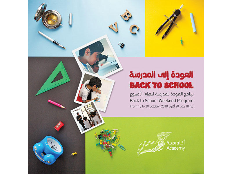 أعلن مركز الشيخ عبدالله السالم الثقافي تنظيم فعالية "العودة إلى المدارس، العودة الى الماضي" من 18 إلى 20 الجاري، وهي تجربة تعليمية شاملة تتضمن ورش عمل. وتندرج "فعالية عطلة نهاية الأسبوع الخاصة" تحت مظلة الأكاديمية الخاصة بالمركز، وهي مبادرة تعليمية شاملة تقدم تجارب تعليمية نوعية لمختلف شرائح الجمهور في الكويت.