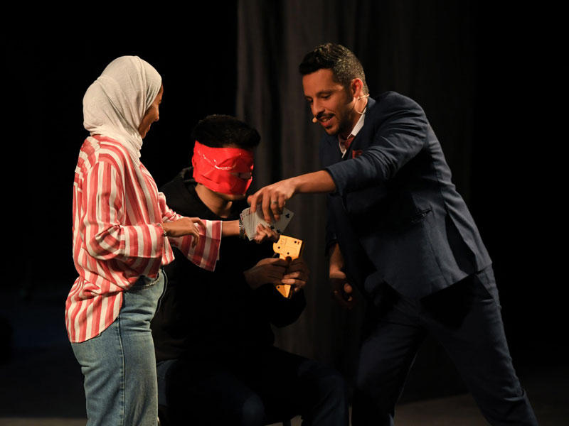 شهد مسرح الاستوديو في مركز الشيخ جابر الأحمد الثقافي عرضاً لخدع بصرية حصرية لـ "ذا إيلوجينستس"، بالإضافة إلى مشاركة مواهب من الشباب الكويتي فرقة "إماجن". وحضر العرض كوكبة من الجمهور الكويتي، إلى جانب مؤسس مسرح الرعب الفنان عبدالعزيز المسلم الذي كان يتابع عن كثب كل المهارات والخدع البصرية، كما لو أنه يعرف خيوط اللعبة جيداً. وتحول المسرح إلى شعلة من النشاط الدؤوب، لفرقة "إماجن"، التي تتكون من 22 موهوباً كويتياً في فنون الخفة، بقيادة عبداللطيف الصالح، وجرت تحضيرات مكثفة سبقت العرض المصغر لكلا الفريقين، قبيل العروض الرسمية التي انطلقت أمس، وتستمر أربعة أيام متتالية، على خشبة المسرح الوطني، الذي تم تصميمه خصوصاً لاستيعاب عروض الأوبرا والأعمال الموسيقية والراقصة والباليه، مما يتيح أفقاً واسعة لنجوم هذا العرض، كي يطلقوا العنان لمواهبهم على مدى 100 دقيقة، ليقدموا الفرجة والإبهار في آن معاً.