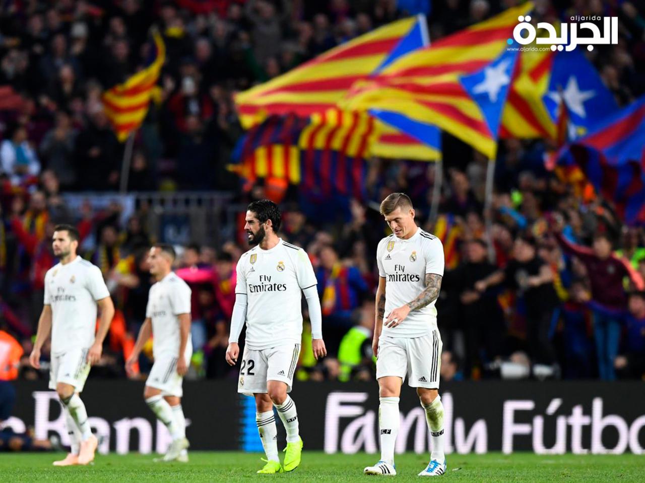 في المقابل، واصل ريال مدريد نزيف النقاط محليا ومني بخسارته الرابعة في مبارياته الخمس الأخيرة التي لم يذق فيها طعم الفوز، فتجمد رصيده عند 14 نقطة وتراجع إلى المركز التاسع، فازدادت الضغوط على مدربه لوبيتيغي الذي ترجح التقارير الصحافية منذ أيام أنه يواجه خطر الإقالة.ولم يفز ريال مدريد في الدوري منذ 22 سبتمبر الماضي عندما تغلب على إسبانيول الجار الكاتالوني لبرشلونة 1-صفر، ليمنى بعدها بثلاث هزائم أمام اشبيلية صفر-3 وديبورتيفو ألافيس صفر-1 وليفانتي (1-2)، ويتعادل مع جاره أتلتيكو مدريد صفر-صفر.وترافقت هذه الهزائم لريال مع عقم تهديفي هو الأسوأ في تاريخ النادي.وكانت الأفضلية لبرشلونة في الشوط الأول وكان بإمكانه تسجيل أكثر من هدفيه، فيما فرض النادي الملكي أفضليته في الشوط الثاني ونجح في تقليص الفارق مطلعه.الا أن ريال دفع ثمن الفرص المهدرة لتستقبل شباكه هدفا ثالثا قاتلا عبر سواريز انهار بعد لاعبوه، وهو ما استغله الفريق الكاتالوني وأضاف هدفين بينهما هدف للأوروغوياني الذي أصبح أول لاعب من برشلونة، باستثناء ميسي، يسجل "هاتريك" في مرمى النادي الملكي منذ البرازيلي روماريو عام 1994. كما بات سواريز اللاعب الـ11 الذي يسجل هاتريك في مرمى النادي الملكي في تاريخ مباريات الكلاسيكو.