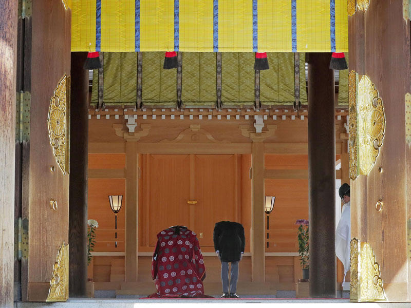 وذكرت وكالة كيودو اليابانية للأنباء أن الزوجين تبادلا خاتمي الزواج، وقاما بتلاوة نذور الزواج خلال المراسم التي حضرها 30 شخصا بينهم أفراد الأسرتين.