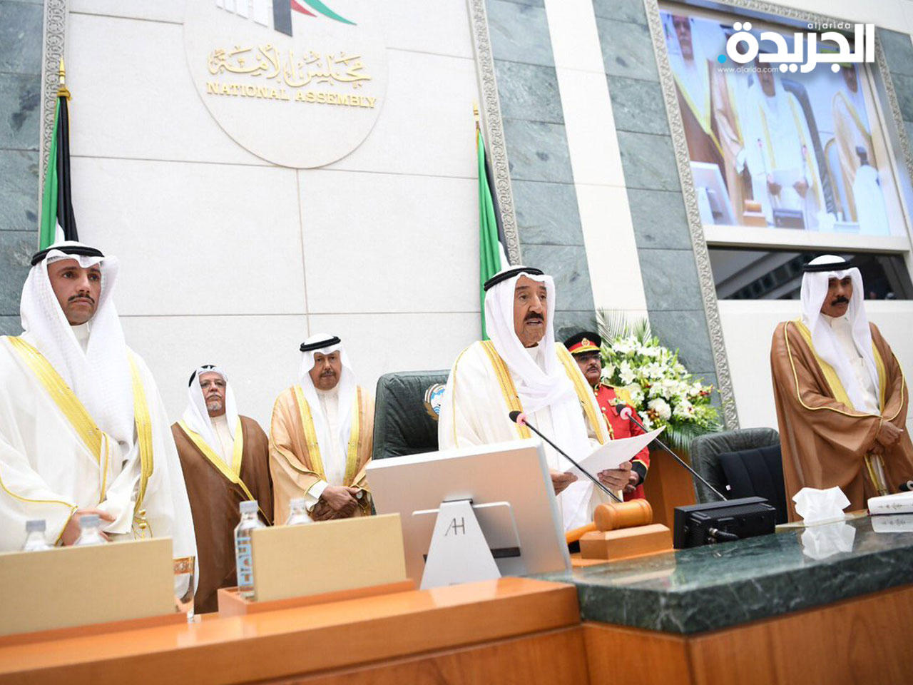الحمدلله رب العالمين والصلاة والسلام على سيدنا محمد خاتم الأنبياء والمرسلين وعلى آله وصحبه أجمعين.السلام عليكم ورحمة الله وبركاتهإخواني وأبنائي رئيس وأعضاء مجلس الأمة المحترمينأحييكم أطيب تحية ونحن نلتقي اليوم بافتتاح دور الانعقاد العادي الثالث من الفصل التشريعي الخامس عشر لمجلس الأمة وبعون الله وتوفيقه نفتتح أعمال هذا الدور ونسأله تعالى أن يسدد خطانا نحو المزيد من العمل والإنجاز لخدمة كويتنا الغالية وأهلها الأوفياء.نحمد الله ونسجد له شاكرين ما أكرمنا من نعم كثيرة أعظمها الأمن والأمان الذي يتمتع به كل من تظله سماء هذه الأرض الطيبة يعيش آمنا مطمئنا على نفسه وأهله وعرضه وماله في ظل شامل من الحرية والعدالة والمساواة والكرامة الإنسانية وسيادة القانون كما نحمده تبارك وتعالى على ما أنعم به هذا البلد الطيب وأهله الكرام من خير عميم ورزق وفير يسر لهم أسباب الحياة الكريمة ورغد العيش فلله الشكر والفضل والمنة.إخواني... أبنائيإن الحرص على نظامنا الديمقراطي والدفاع عنه قدرنا علينا أن نتمسك به ونصونه من كل تجاوز على قيمه أو تعد على حدوده أو تعسف في ممارسته لكي لا يصبح معول هدم وتخريب وأداة لهدر مقدرات هذا البلد وتقويض مقوماته.وإذ نؤكد مجددا إيماننا بالديمقراطية فكرا ونهجا وممارسة وحرصنا عليها ودعمنا لها فقد عملنا وسنظل نعمل على ترسيخها ورفع قواعدها وكنا نأمل ونتطلع وقد مضى على انطلاقتها الحديثة أكثر من خمسين عاما أن تكون قد بلغت أو قاربت مرحلة النضج والرشاد ولكنه من المؤسف ان كثيرا من ذلك لم يتحقق ورغم تقديري للأداء الإيجابي المسؤول الذي يشهده المواطن لدى كثير من الأخوة الأعضاء فمازلنا نشهد ممارسات سلبية ومواقف وطروحات ومشاريع عبثية لا تخدم في حقيقتها مصلحة الوطن بل تسعى إلى التكسب الانتخابي أو تخدم مصالح شخصية أو أجندات خاصة على حساب مصلحة الكويت العليا تارة بالعزف على أوتار الطائفية البغيضة وتارة بطرح مشاريع براقة المظهر تدغدغ عواطف البسطاء ولكنها في حقيقتها تلحق ضررا بليغا بالدولة والمجتمع حاضرا ومستقبلا وتارة أخرى بالتمادي بمخالفة الدستور والقانون ترويجا لمكاسب شخصية وبطولات وهمية حتى وإن أدى ذلك إلى إرباك الأمور في البلاد وتعطيل مصالح المواطنين وعرقلة عمل الدوائر والمؤسسات كل ذلك بالمجافاة لروح الدستور والمخالفة لمقاصده الأساسية... فلماذا كل هذا السباق المحموم على تقديم الاستجوابات؟!! ولماذا الإصرار على تقديم الاستجوابات لرئيس مجلس الوزراء في أمور تدخل في اختصاص وزراء آخرين؟! بالمخالفة للدستور واللائحة الداخلية لمجلس الأمة ولقرارات المحكمة الدستورية التفسيرية الواضحة!!! وإذا كانت الحقوق الدستورية للنائب واجبة الاحترام فإن من الضروري إدراك أن تلك الحقوق ليست حقوقا مطلقة فهي مقيدة بشروط وضوابط تكفل انضباطها وعدم انحرافها وخروجها عن غاياتها وأهدافها... ولا يجوز بمن أنيط بهم الحفاظ على الدستور والقوانين مخالفتها!! وعلى مشرعي القوانين ومنفذيها أن يكونوا هم القدوة الحسنة باحترامها والالتزام بها لكي ينضبط العمل البرلماني في مساره الإيجابي المنشود.فما قيمة وجدوى أحكام الدستور والقوانين وقرارات المحكمة الدستورية إذا تم تجاوزها؟!!... وبحكم موقع المسؤولية والأمانة التي أحملها في عنقي أقول بكل صراحة وجدية: لن أسمح بأن نحيل نعمة الديمقراطية التي نتفيأ بظلالها إلى نقمة تهدد الاستقرار في بلدنا وتهدم البناء وتعيق الإنجاز!!تعلمون أنني من جيل المؤسسين المخضرمين أعضاء المجلس التأسيسي الذي كانت مهمته إعداد مشروع الدستور ولازلت أذكر - ولاشك أن الأخوة الأحياء من أعضاء المجلس التأسيسي متعهم الله بموفور الصحة والعمر المديد كذلك يذكرون - ما حفلت به مداولات ومناقشات المجلس التأسيسي ولجانه من المخاوف والهواجس والمحاذير من احتمالات إساءة استغلال بعض نصوص الدستور مستقبلا ومن المحزن أن كثيرا من تلك المخاوف والهواجس والمحاذير قد تحقق واقعا اليوم وإذا رجعتم إلى س