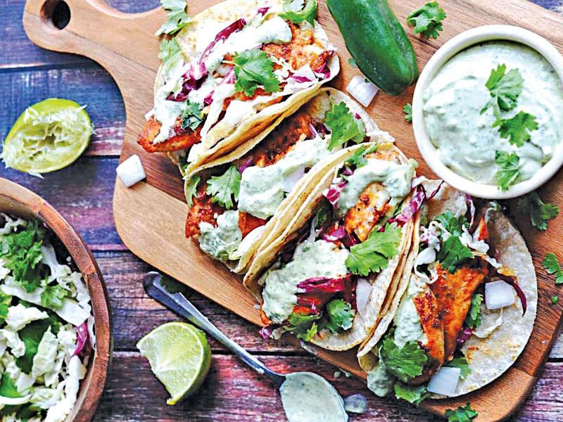 تاكو السمك مع صلصة الأفوكادو والكزبرة