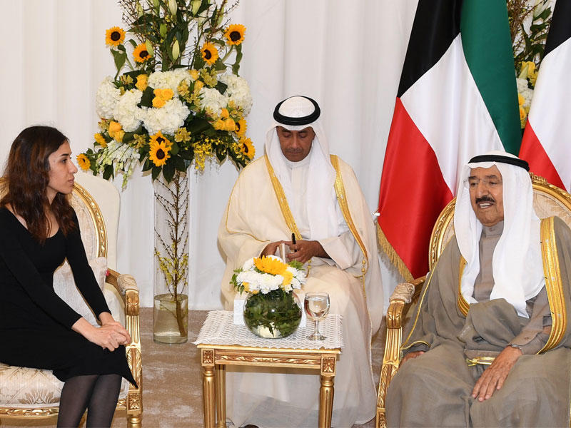 أشاد سمو أمير البلاد الشيخ صباح الأحمد بالدور الإنساني لحائزة «نوبل للسلام» لعام 2018 العراقية نادية مراد، وجهودها في تركيز الأنظار على جرائم الحروب وسعيها لمكافحة ذلك، مؤكداً أن «ما تعرضت له ليس سهلاً، وتحملت العذاب والآلام كثيراً».وقال الأمير، خلال استقباله مراد وتهنئتها بالجائزة أمس: لم أكن أتمنى أن تفكري بكل الأشياء التي تؤلمك وتؤلمنا، لكن عليك التفكير في المستقبل، فهو أفضل بإذن الله، والعراق الآن في حالة استقرار أكثر مما مضى.