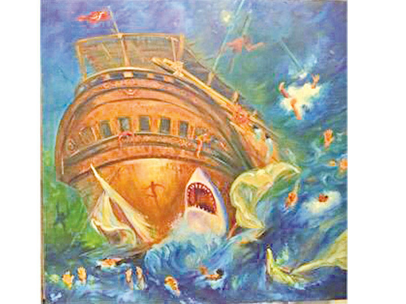 فعلاً، كانت استضافتي للفنان النمساوي كريستوف، وهو من أصل ألماني، الأولى من نوعها، أي أن يستضيف فنان فناناً آخر، وهو يستحق الدعوة لإمكاناته وخبرته الطويلة في مجال الفن التجريدي والرسم المباشر. أشير إلى أنه تخرّج في المدرسة الأكاديمية بفيينا منذ السبعينيات، ويملك غاليري للفن منذ نحو 25 عاماً. أعتقد أن الفنانين الشباب بحاجة إلى الاطلاع على الأعمال التي يقدمها كريستوف للاستفادة من خبرته الفنية. والحمدلله، لقي المعرض صدى كبيراً لدى الجمهور، وتشرفنا بزيارة الشيخ د. ابراهيم الدعيج الصباح وبعض الشخصيات الأخرى. لدي فكرة فنية مشابهة وهي جديدة أيضاً في صدد تنفيذها في القريب العاجل.غرق مركب العائلة