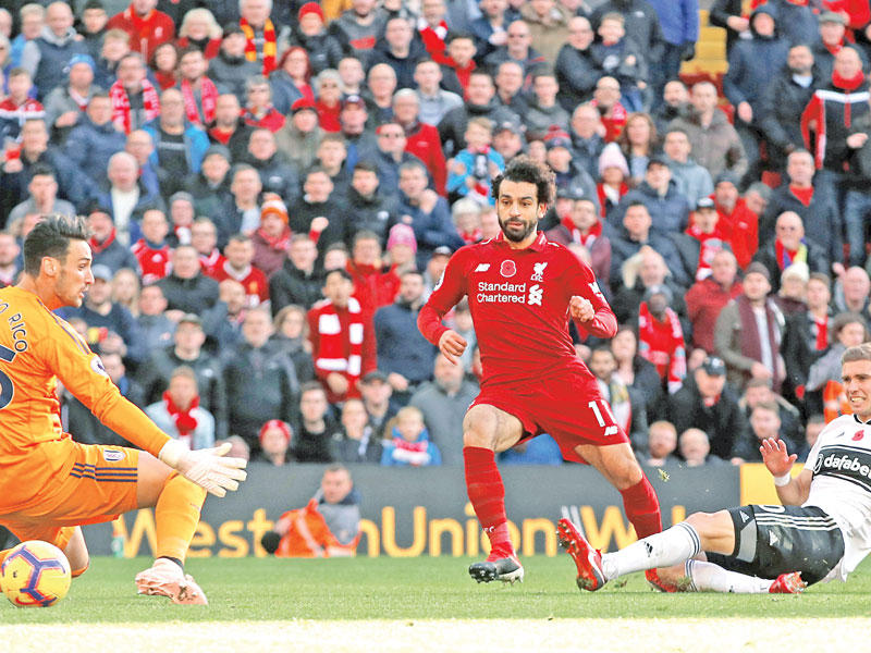 أحرز ليفربول هدفين بواقع هدف في كل شوط عبر محمد صلاح وشاكيري، ليفوز 2-صفر على ضيفه فولهام، ليتقدم من المركز الثالث إلى صدارة الدوري الإنكليزي الممتاز لكرة القدم أمس.