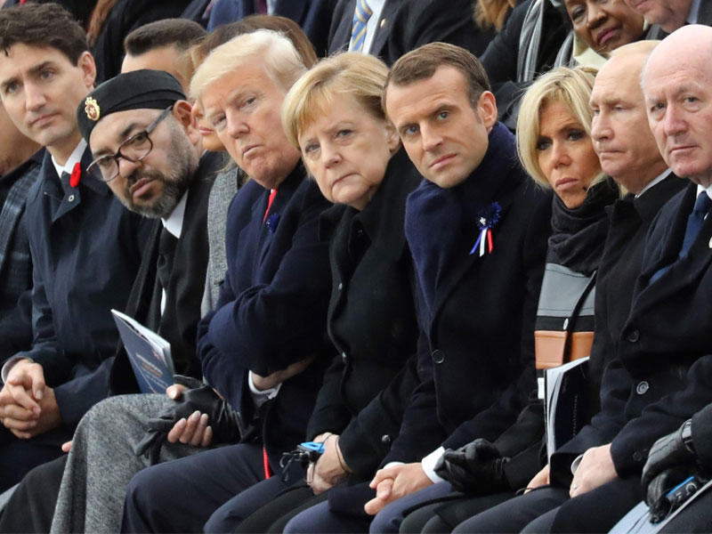 ماكرون ينتقد أطروحات ترامب... وبوتين الأكثر ارتياحاً في باريس