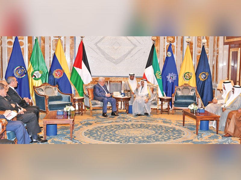 استقبل صاحب السمو أمير البلاد الشيخ صباح الأحمد، بقصر بيان ظهر أمس، الرئيس الفلسطيني محمود عباس والوفد الرسمي المرافق له، بمناسبة زيارته الرسمية للبلاد.وعقدت المباحثات الرسمية بين الجانبين، وترأس الجانب الكويتي صاحب السمو وسمو رئيس مجلس الوزراء الشيخ جابر المبارك وكبار المسؤولين بالدولة، وعن الجانب الفلسطيني الرئيس عباس وكبار المسؤولين في الحكومة الفلسطينية.وصرح وزير شؤون الديوان الأميري الشيخ علي الجراح بأن المباحثات تناولت العلاقات الثنائية وسبل دعمها في مختلف المجالات، وتوسيع أطر التعاون بين البلدين الشقيقين، بما يخدم مصالحهما المشتركة، ودعم وحدة الصف ومسيرة العمل العربي المشترك.وساد المباحثات جو ودي جسّد روح الأخوة، التي تتميز بها العلاقة والرغبة المتبادلة في المزيد من التعاون والتنسيق على كل الصعد.