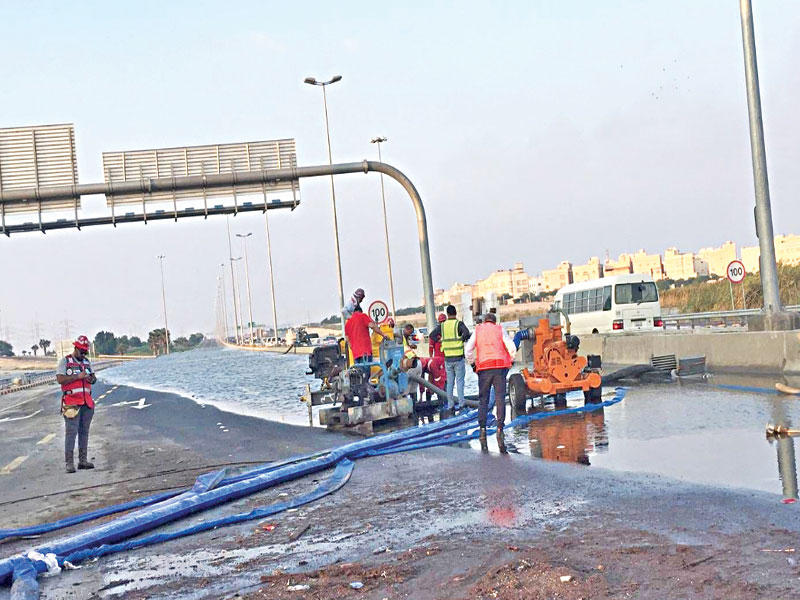 «الطرق»: عمليات سحب مياه الأمطار من «السابع» ووصلة الدوحة جارية