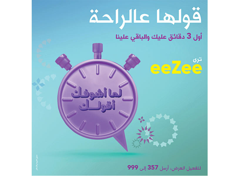 وأوضحت «زين» أن العرض الجديد، الذي يستمر شهرا كاملا يُقدّم لعملاء الدفع المسبق eeZee فرصة الاستمتاع بالمكالمات الصوتية التي تُجرى على شبكة زين (من خط زين إلى خط زين) مع احتساب قيمة أول 3 دقائق من المكالمة فقط على العميل، وبعدها يحصل على الدقائق الباقية (57 دقيقة) مجانا، ليكون إجمالي وقت المكالمة ساعة كاملة (60 دقيقة)، ويمكن للعملاء الاشتراك في العرض الجديد مجانا عن طريق إرسال الرمز «357» إلى الرقم 999.