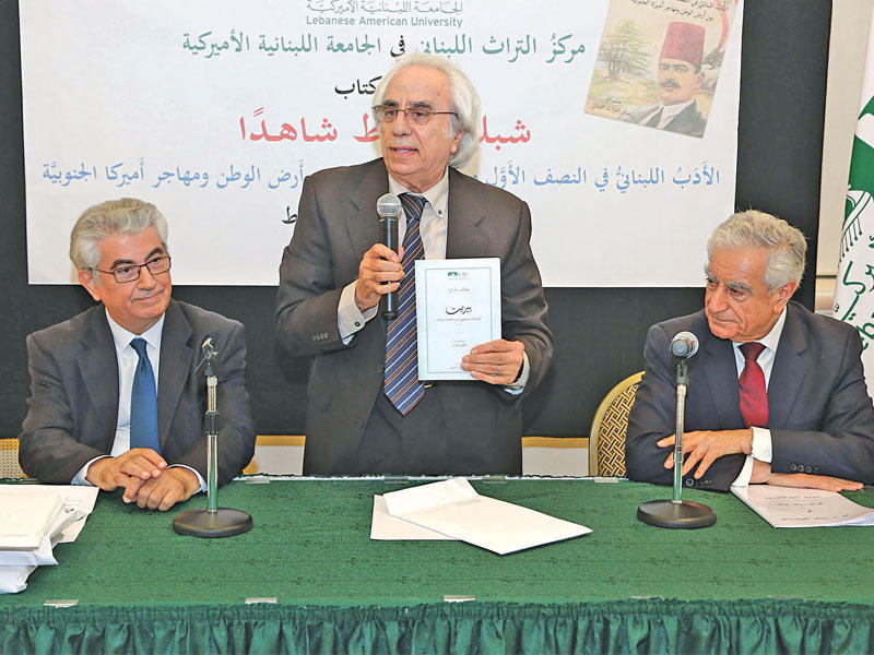 افتتح رئيس الجامعة اللبنانية الأميركية الدكتور جوزف جبرا اللقاء حول كتاب «شبلي ملاط شاهداً: الأدب اللبناني في النصف الأول من القرن العشرين بين أرض الوطن ومهاجر أميركا الجنوبية»، مشيراً إلى «دأب المؤلف الدكتور هيام ملاط المشهود له بالكفاءة والالتزام والعطاء والإخلاص، في قيامه بهذا الإنجاز الأدبي بما لديه من علاقة وثقى مع تلك الأرض الشاسعة، البعيدة، الغنية، المعطاء، لينقل عطاءات ناسنا فيها، ويضعنا في حقبة من زمن، من خلال وثائق وصحف ونصوص نشرت في دول عدة في أميركا الجنوبية في حقبات عدة من التاريخ، بين لبنانيين راحوا بعيداً، وآخرين ظلوا هنا، فقام رابط العطاء والإبداع، يؤطر صورة لبنان وبنيه، رسل حضارة وفكر وتفوّق».