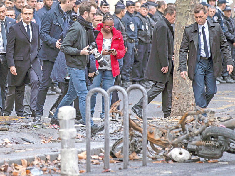 الرئيس الفرنسي تفقّد قوس النصر وعقد اجتماع أزمة لحكومته... و«الشيوخ» يستجوب وزير الداخلية