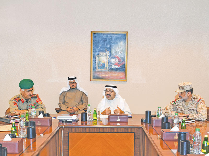 من جانب آخر، عقد النائب الأول لرئيس مجلس الوزراء وزير الدفاع الشيخ ناصر صباح الأحمد، بقصر السيف، صباح أمس، وبحضور رئيس الأركان العامة للجيش الفريق الركن محمد الخضر ونائب رئيس الأركان العامة للجيش الفريق الركن عبدالله النواف، اجتماعا مع آمر القوة البرية اللواء الركن خالد الصباح وعدد من قيادات القوة البرية.واستمع النائب الاول خلال الاجتماع إلى إيجاز من آمر القوة البرية عن مدى ما وصلت إليه القوة من جاهزية واستعداد، بالإضافة إلى طبيعة تأهيل وإعداد منتسبيها من ضباط وضباط صف وأفراد والتمارين والتدريبات الدورية التي تقوم بتنفيذها.وأثنى على ما وصلت إليه القوة البرية من جاهزية تعكس حجم الجهود التي تبذل من قبل قيادتها في إعداد وتأهيل منتسبيها، مشدداً على ضرورة الاستمرار بعمليات التأهيل والتدريب لمنتسبي القوة، وفق أحدث ما توصلت إليه التكنولوجيا العسكرية من تقنيات وأساليب متطورة ووسائل تدريب حديثة، مع الاستمرار في تنفيذ التمارين والتدريبات المشتركة التي تسهم بدورها في عملية تبادل الخبرات بين مختلف القوات. كما أكد حرصه ودعمه الدائم لكل ما فيه مصلحة منتسبي الجيش الكويتي، والارتقاء بمستوى تأهيلهم وتدريبهم، والعمل على توفير كافة الإمكانيات التى من شأنها خلق بيئة عمل جاذبة لهم، لتحقيق الهدف المنشود وهو خدمة هذا الوطن والذود عن ترابه الغالي.وترأس النائب الأول في قصر السيف امس الاجتماع الرابع للمجلس الأعلى للبيئة. وقال مقرر "المجلس" الشيخ عبدالله الأحمد في تصريح صحافي بعد الاجتماع ان المجلس أكد أهمية تفعيل كل مواد قانون حماية البيئة. وناقش أهمية تحسين جودة الهواء في الدولة بتوفير الوقود النظيف لمحطات القوى الكهربائية وتضمين الطاقات البديلة كأحد الاشتراطات الملزمة عند إنشاء المباني الحكومية وتقرر في هذا الصدد تكليف الهيئة العامة للبيئة بالتنسيق الجهات المختصة بالدولة بتقديم تقرير للمجلس الأعلى متضمنا البرنامج الزمني لاستبدال الوقود في محطات القوى الكهربائية ومتطلبات استخدام الطاقات البديلة.وذكر أنه تأكيدا من المجلس على استيفاء مشاريع الدولة لكافة الاشتراطات البيئية واتخاذ جميع الاجراءات الكفيلة للمحافظة على البيئة فقد ناقش المجلس عددا من المشاريع التي تقع في نطاق جون الكويت وأكد عدم تحميل المنطقة أي أعباء او احمال بيئية إضافية.وأشار الشيخ عبدالله الصباح إلى أن المجلس اطلع على التقارير السنوية المقدمة من كل من وزارة الداخلية ممثلة في إدارة شرطة البيئة وصندوق حماية البيئة ووجه بضرورة دعم جهود إدارة شرطة البيئة وتعزيز امكاناتها بما يمكنها من أداء أعمالها بالإضافة إلى تفعيل دور الصندوق وفقا لاختصاصاته الواردة في قانون حماية البيئة.