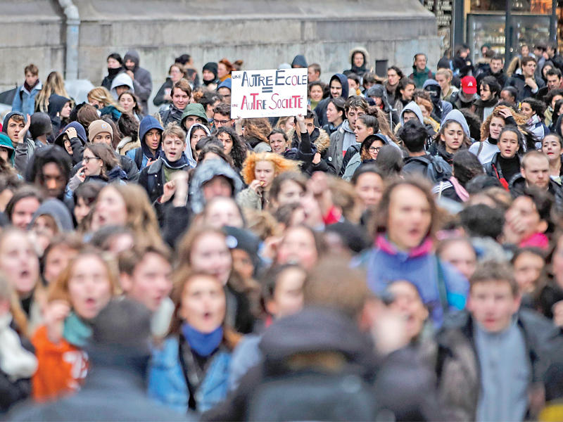 في المقابل، تعتزم العديد من الجماعات السياسية اليسارية طرح تصويت بحجب الثقة ضد الحكومة الفرنسية، التي هزتها بالفعل حركة "السترات الصفراء" وأجبرتها على التراجع عن فرض زيادة الضرائب على البنزين والديزل.وبحسب وكالة أنباء بلومبرغ، فإن حزب "فرنسا الأبية" الذي ينتمي إلى أقصى اليسار، جنباً إلى جنب مع الاشتراكيين والشيوعيين، الذين يحتلون معاً 62 مقعداً من أصل مقاعد الجمعية الوطنية البالغ مجموعها 577 مقعداً قالوا، أمس الأول، إنهم بصدد طرح التصويت في أقرب وقت ممكن بحلول يوم الاثنين المقبل.وقال أوجو بيرناليسيس نائب رئيس حزب فرنسا الأبية :" لدينا حكومة تسير مباشرة في طريق مسدود". وأضاف أثناء خروجه من اجتماع مع أحزاب اليسار الأخرى :"إنها مسؤوليتنا أن نضع حدا لهذا، والتأكد من أننا سنغير الحكومة وبالتالي سياساتها".تركيع الطلاب