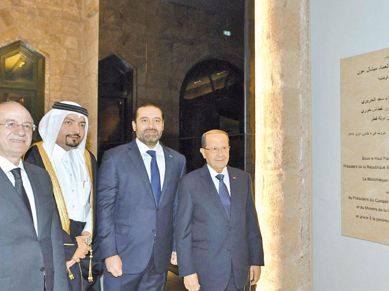 افتتح رئيس الجمهورية العماد ميشال عون المبنى الجديد للمكتبة الوطنية في احتفال بحضور رئيس مجلس الوزراء سعد الحريري، ووزير الثقافة الدكتور غطاس خوري، وسفير قطر في لبنان محمد حسن جابر الجابر، وشخصيات سياسية وثقافية وإعلامية...في المناسبة، اعتبرت المديرة التنفيذية للمكتبة الوطنية جلنار عطوي أن المكتبة الوطنية كمؤسسة عامة مستقلة أريد لها أن تكون حافظة للتراث الفكري الوطني ومركزاً ثقافياً في قلب العاصمة بيروت النابض بالحياة. بدوره تمنى رئيس مجلس الإدارة المدير العام للمكتبة الوطنية الدكتور حسان العكره، «أن تتمكن المكتبة الوطنية من أداء دورها النهضوي، مستخدمة الوسائل الحديثة في مجال تكنولوجيا المعلومات، والمواقع الإلكترونية وأساليب التواصل الرقمية، فتكون قيمة علمية وثقافية تضاف إلى القيم الانسانية التي رسخت بلادي على خارطة العالم».أما سفير قطر لدى لبنان محمد حسن جابر الجابر فأكد أن المساهمة القطرية في إعادة إحياء بيت ذاكرة التاريخ اللبناني الفكري والعلمي في هذا المشروع، هي انعكاس لتحقيق الذات القطرية على قاعدة الاستثمار في الإنسان لحفظ ثقافته وتاريخه. كذلك أشار وزير الثقافة د. غطاس خوري إلى أن «إعادة افتتاح المكتبة الوطنية في لبنان، عيد ثقافي لصرح يضم ثروة ليست كالثروات، فيه الكتاب، والدورية، والمخطوطة، واللوحة، فيه نتاج الفكر الإنساني بالآلاف، بعرض حديث ممكنن، في قاعات وصالات للمطالعة وللعروض الفنية واللقاءات الثقافية».صرح حضاري مشرق
