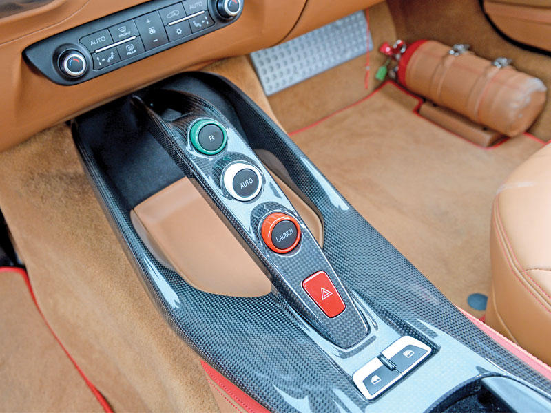 نالت مقصورة 812 Superfast عملية تغيير جذرية لتعزيز طابع السيارة الرياضي. فتعانق مساحات خفيفة ومدمجة انحناءات البنى الداخلية لدرجة أن هذه البنى الأخيرة تبرز واضحة في بعض الأماكن. وقد تمّ رصف هذه الأسطح المتماسكة على شكل طبقات ثم تمّ تفكيكها عمداً لإحداث فراغات، لتبدو من خلالها العناصر الأساسية وكأنها تطفو. فتصبح المقصورة تتحلّى بطابع بنصح بحيوية سيارات السباق الأصيلة وبالأناقة الرقي والفخامة التي لا تمل العين منها. وتلتفّ لوحة العدادات الأفقية حول فتحات الهواء لمنح طلّة راقية وأنيقة بانحناءات بارزة تعيد إلى الذاكرة مقصورة طراز LaFerrari. وعبر إضافة فتحة هواء أخرى، استطاع المصمّمون إضفاء المزيد من الخفة على مظهر لوحة العدادات عبر إنشاء "شقّ" في القسم المركزي يُبرز أكثر فأكثر العناصر المعدنية وامتداداتها التي تصل إلى المساحات المنجّدة. وتتميز منطقة السائق والتجويفات في الوسط بتطعيمات بلون متباين لإبراز أشكالها الدينامية أكثر.أما المقود وأزرار التحكم فيه، ووحدات التحكم على جانبيه، والتداخل بين المساحات والمواد المتباينة، فتعطي بمزيجها المقصورة طابعاً متطرفاً تتوجّه فيه جميع العناصر المختلفة نحو السائق الذي هو العنصر الأهم في السيارة والذي تنحني المساحات والأشكال في السيارة لتسليط الضوء على دوره.وترسم الخطوط الأفقية مساحات موجهة نحو السائق بوضوح جلي، لكنها تنجح أيضاً في عدم استبعاد الراكب التجربة الرائعة التي تؤمّنها السيارة، وهذا ليس إنجازا سهلا. كذلك، تساهم التطعيمات المصنوعة بحرفية لافتة في وسط لوحة العدادات وحول حجرة القفازات في ابتكار توازن مثالي بين المهارة الحرفية والتكنولوجيا المتقدمة لطالما اشتهرت به علامة فيراري.ويعتمد المقعدين تصميماً أشبه بشكل معيار النغم، وتستفيد من هذا الاتساع لإنشاء تداخلاً بين المواد الصلبة والفراغات يضفي طابعاً من القوة والمتانة على المقعد ومسند الظهر. ويتباين المقعدان عن الأسطح الداخلية بفضل التنجيد الجلدي المخرّم الذي يعطي التصميم الجديد لمسة رياضية. وباختصار، تجتمع الأشكال المدروسة والمساحات المصممة بدقة مع السهولة الكبيرة في الاستخدام ومع اللمسات الرياضية الخفيفة للحصول على مقعد من الطراز الأول.المحرك